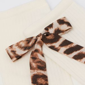 Women’s short socks in soft ribbed cotton combine comfort and style. The leopard print bow appliqué on the back adds a unique and trendy touch.
