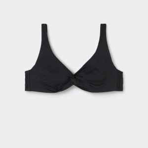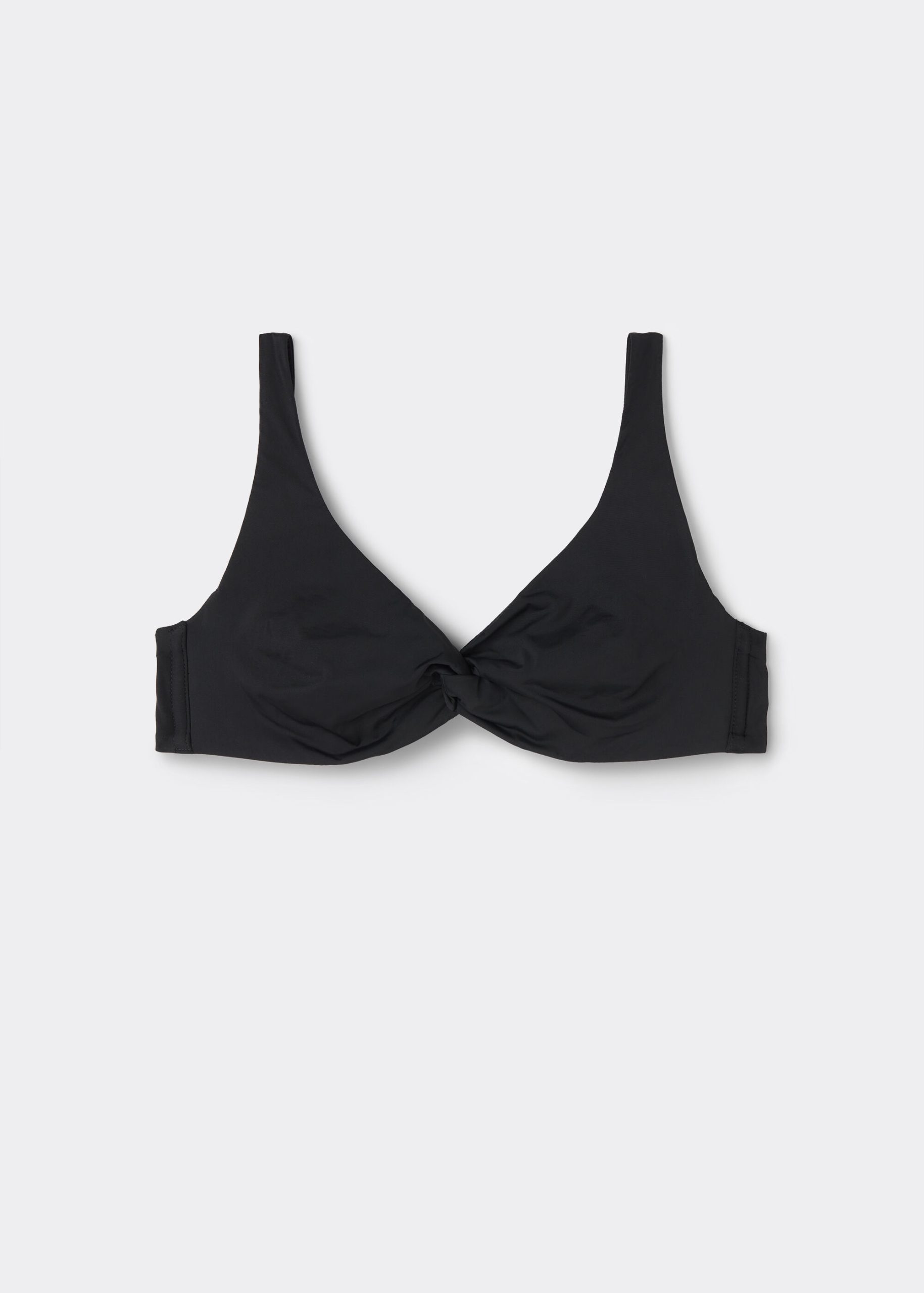 The balconette swimsuit top combines timeless elegance with thoughtful design, making it a standout knot-front bikini. Featuring unpadded cups with underwire and a central knot detail, this top delivers a flattering shape and secure fit for larger busts. The wide, side boning, and tulle-lined cups ensure excellent support while maintaining a smooth silhouette. Crafted from ultra-soft fabric, it feels light and comfortable against the skin, perfect for all-day beach or pool wear. The adjustable and removable straps can be styled multiple ways—crossed at the back, tied behind the neck, or hooked onto the band at different points to suit your physique. A sturdy back closure with two hook-and-eye adjusters guarantees a custom fit and added underband support. Whether you’re lounging or swimming, this knot detail bikini blends sophisticated style with reliable structure, making it a versatile choice for your swimwear collection.