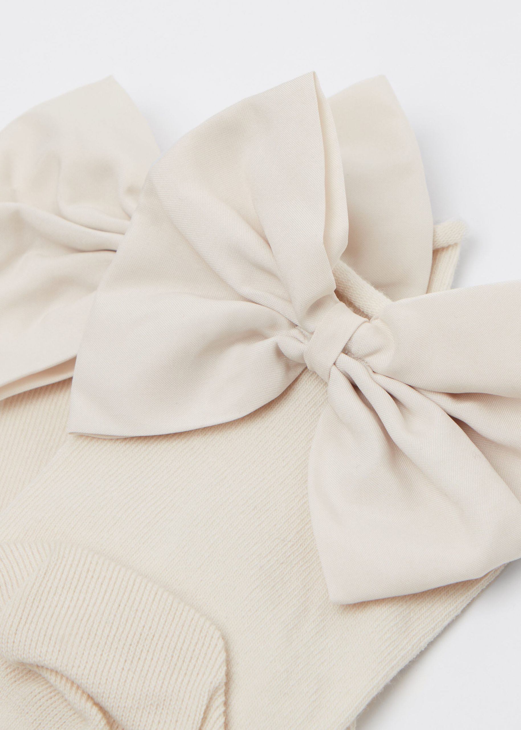 Women’s short cotton socks with comfort edge and decorative maxi bow at back.