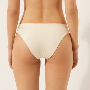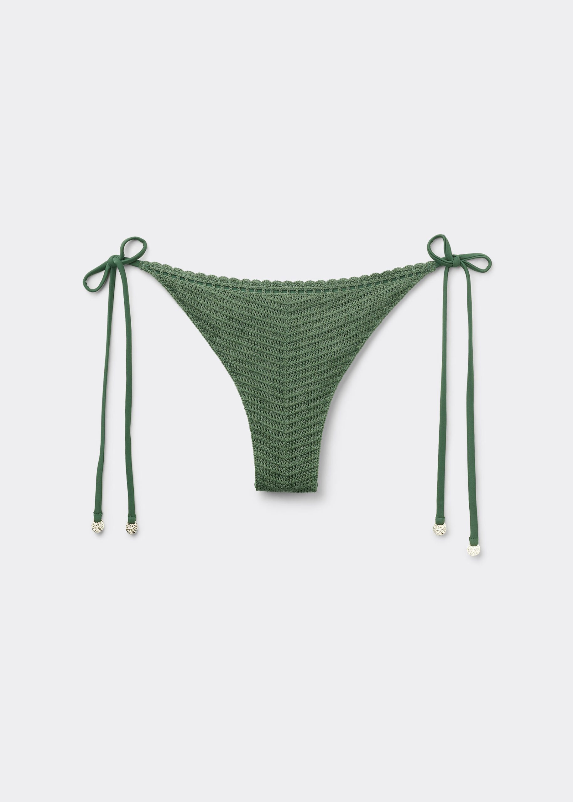 Brazilian cut bikini bottoms with side ties made from refined and sophisticated crochet fabric. The slightly rounded waist at the front allows for both a classic or more high-cut fit, depending on one’s physique. Fully lined with invisible seams.