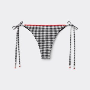 Brazilian String Swimsuit Bottoms Cherry Vichy