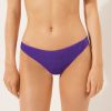 Brazilian cut bikini bottoms with side ties to adjust the fit. The bright glittery fabric stands out with its sophisticated shine, perfect for a glamorous look. Fully lined. Back gathered seam for a better fit.