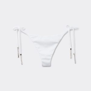 Brazilian String Swimsuit Bottoms Silver Sparkle
