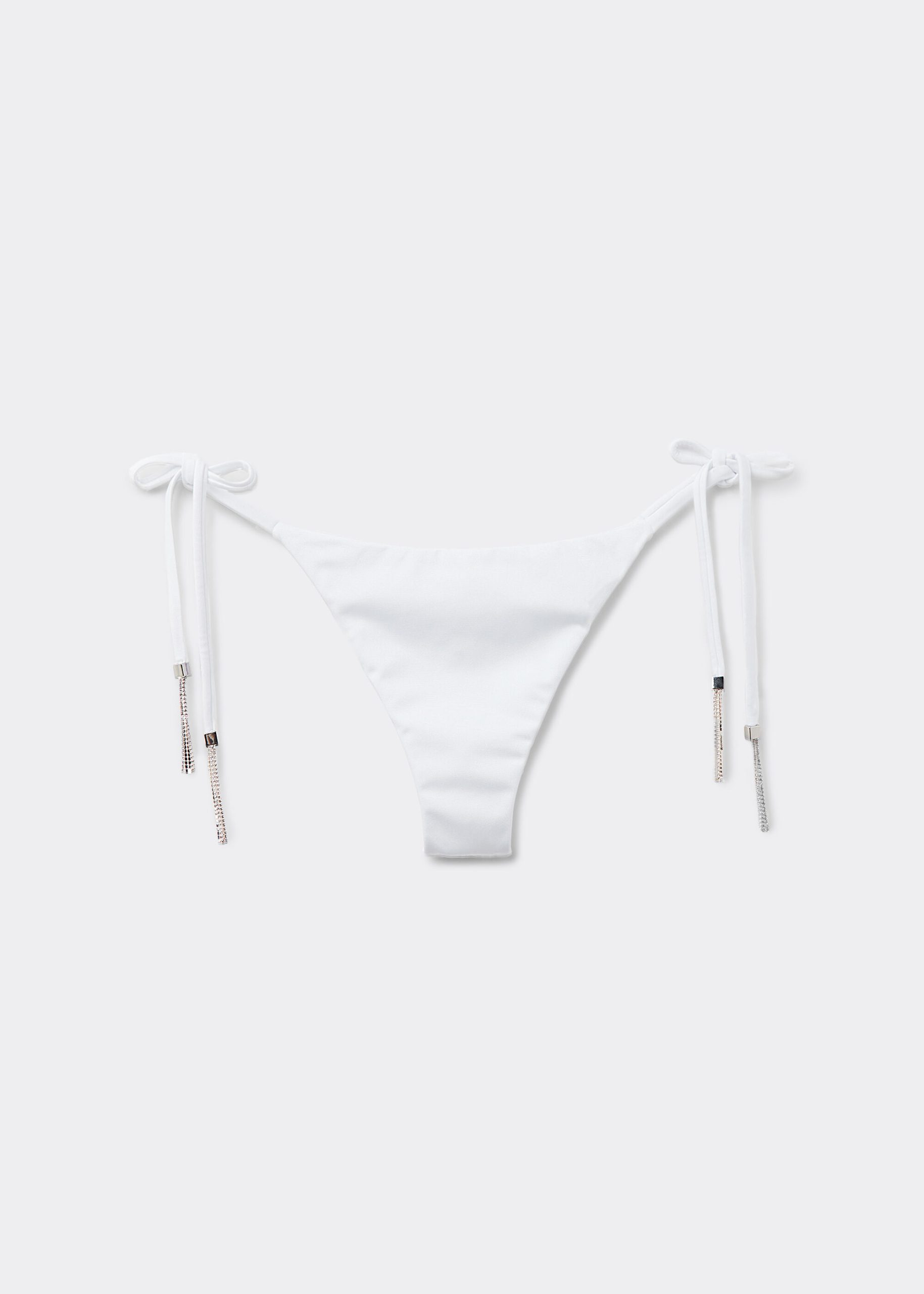 Brazilian cut bikini bottoms with side ties. Fully lined with invisible seams. Back seam for a better fit.
