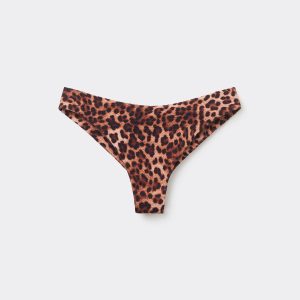 Brazilian bikini bottom with invisible seams. The slightly rounded waist at the front allows for both a regular and more high-cut fit, depending on one’s physique. The style features an elegant animal pattern and lightly ruched fabric.