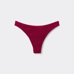 Fully lined Brazilian bikini bottoms. The slightly rounded waist at the front allows for both a regular and more high-cut fit, depending on one’s physique. The style features a crinkle fabric with a three-dimensional effect.