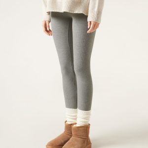 Women’s ribbed cashmere blend modal leggings featuring a comfortable high waist with soft elastic. The fabric is opaque, soft, and breathable, with a brushed interior for a warm and comfortable effect, ideal on the coldest days.
