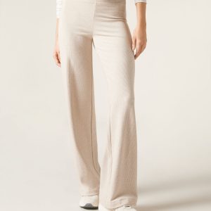 Women’s ribbed cashmere blend modal palazzo pants featuring a comfortable, elastic-free high waist. The fabric is opaque, soft, and breathable, with a brushed interior for a warm and comfortable effect, perfect to combine style and comfort on the coldest days.