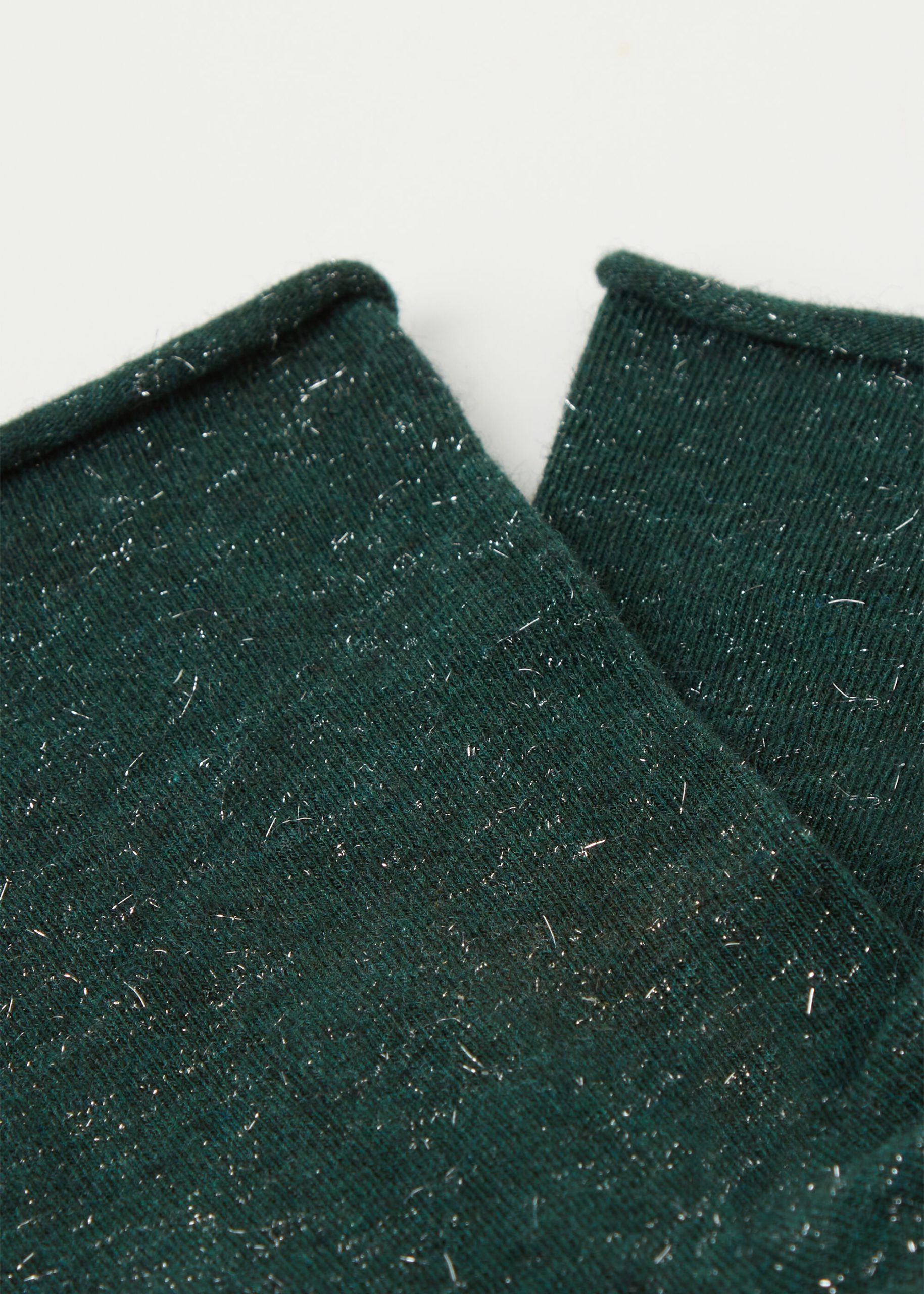 Women’s short socks with warm and cozy cashmere, featuring a sparkly glitter thread and a soft, elastic-free cuff.