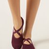 Women’s non-slip Pilates socks in soft cotton, with an elegant crossover front and grip on the sole for optimal stability during activity.