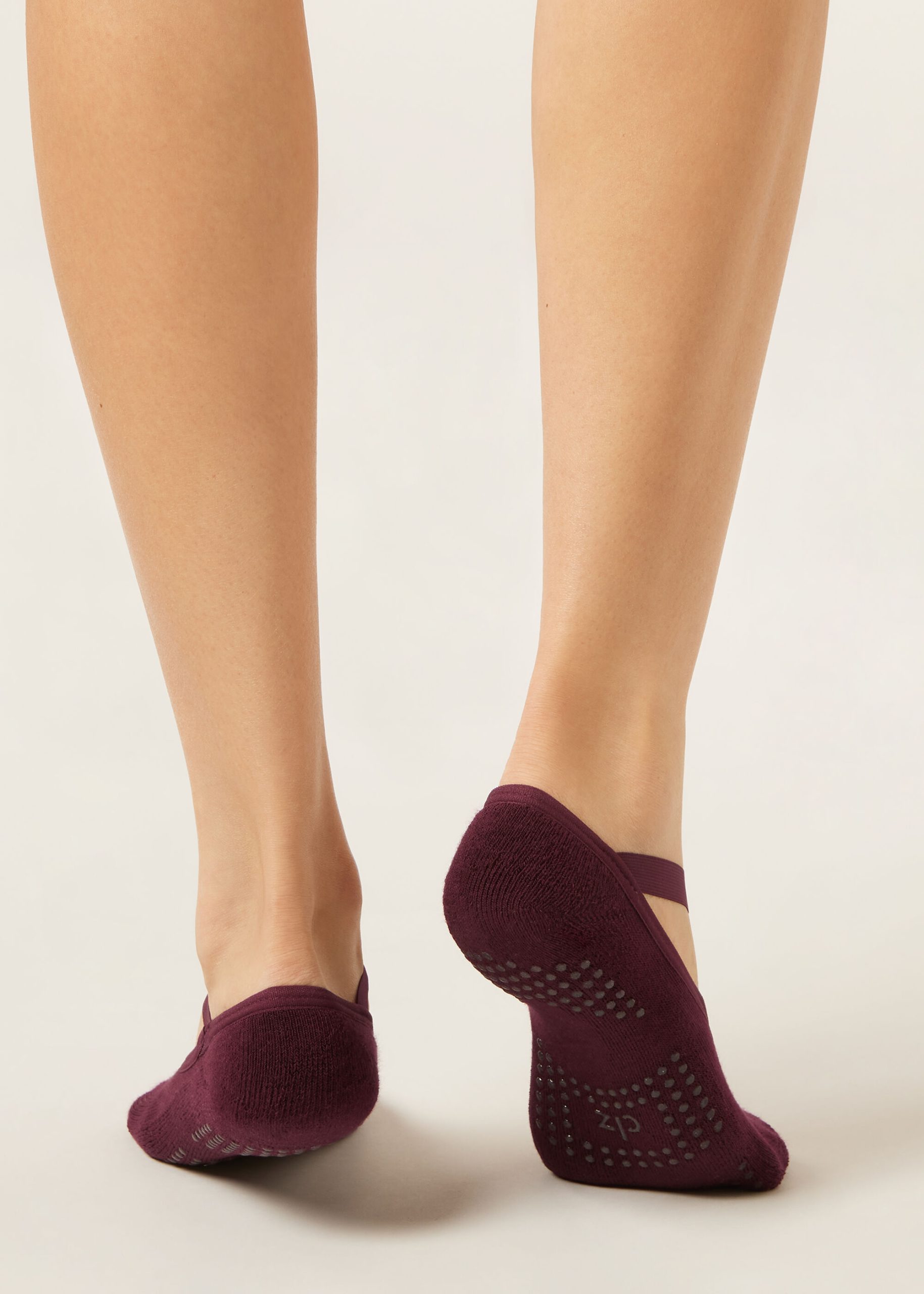 Women’s non-slip Pilates socks in soft cotton, with an elegant crossover front and grip on the sole for optimal stability during activity.