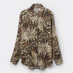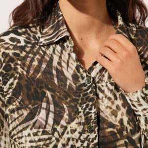 Cropped button-down shirt in animal-print viscose, ideal as a cover up or to finish off a summer outfit. Featuring buttons, a shirt collar and long sleeves, it pairs perfectly with 0BDP148 pants.