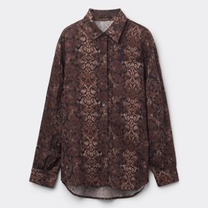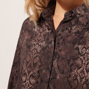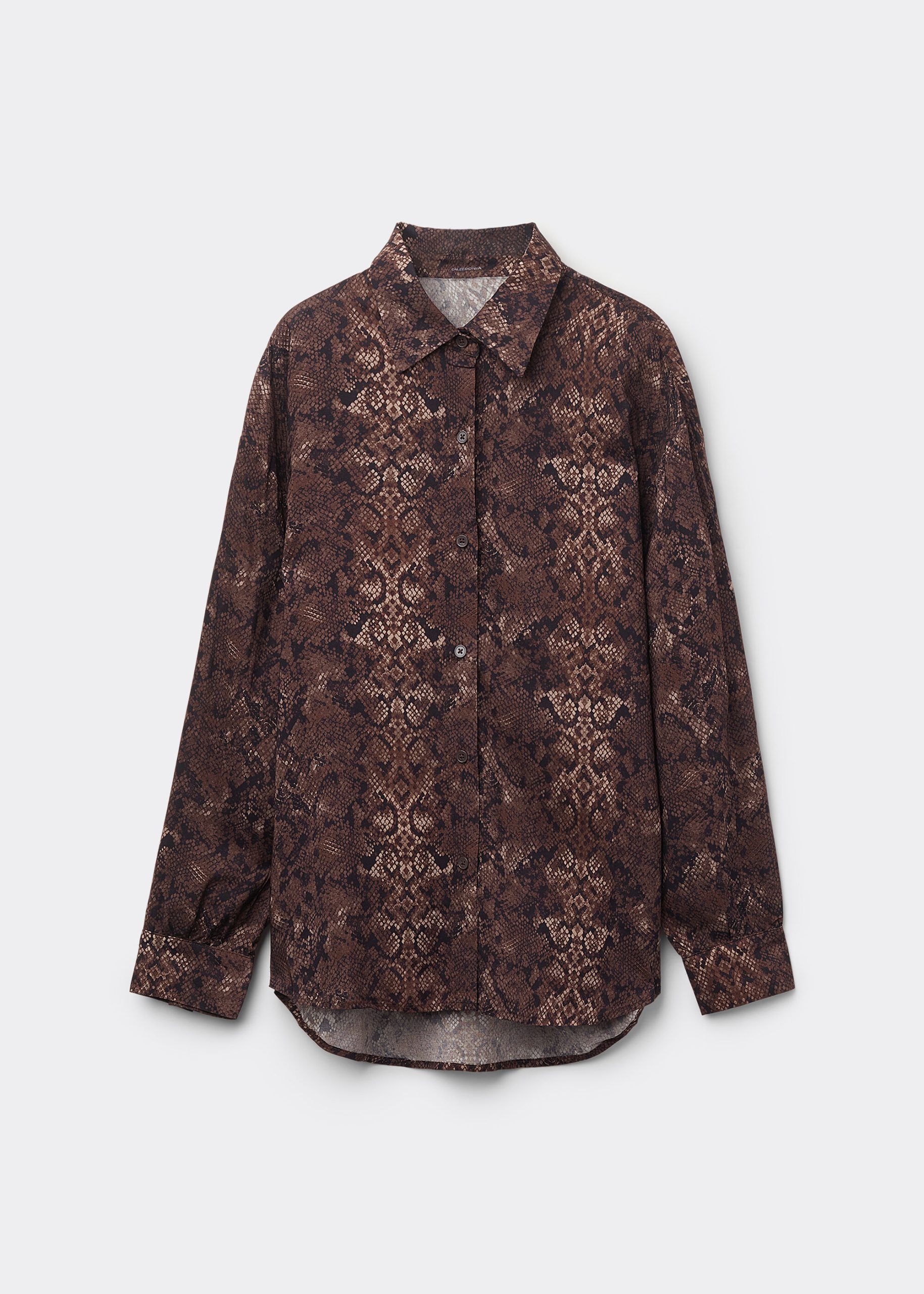 Cropped button-down shirt in animal-print viscose, ideal as a cover up or to finish off a summer outfit. Featuring buttons, a shirt collar and long sleeves, it pairs perfectly with 0BDP148 pants.