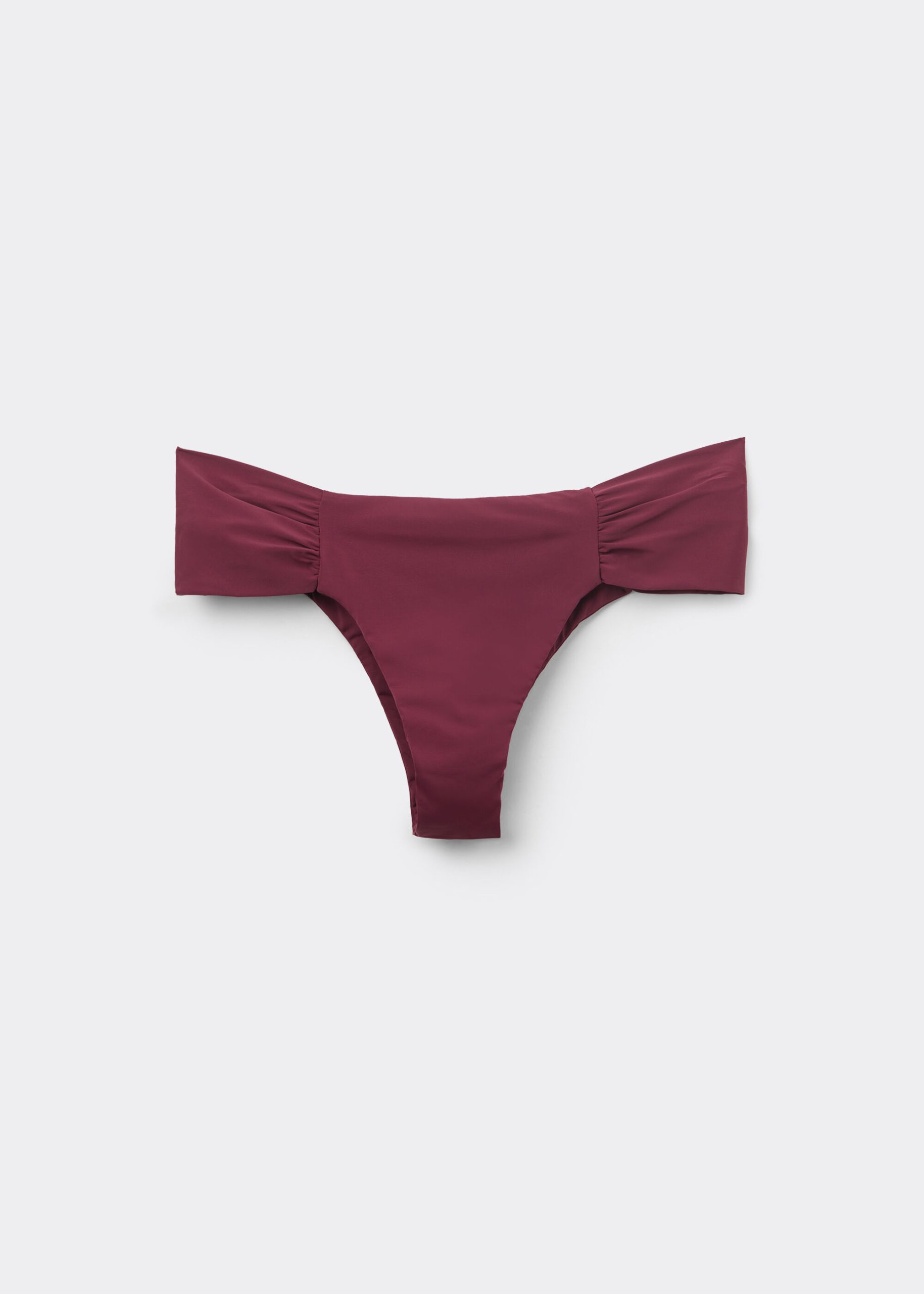 Brazilian bikini bottom with draped fabric at the sides that allow the height to be adjusted. The extremely soft fabric makes it pleasant to wear, offering a light and comfortable feel on the skin. Fully lined and with invisible seams.