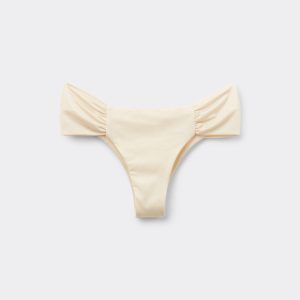 Brazilian bikini bottom with draped fabric at the sides that allow the height to be adjusted. The style features a particularly soft, shiny, silky-effect fabric. Fully lined and with invisible seams.