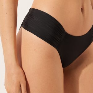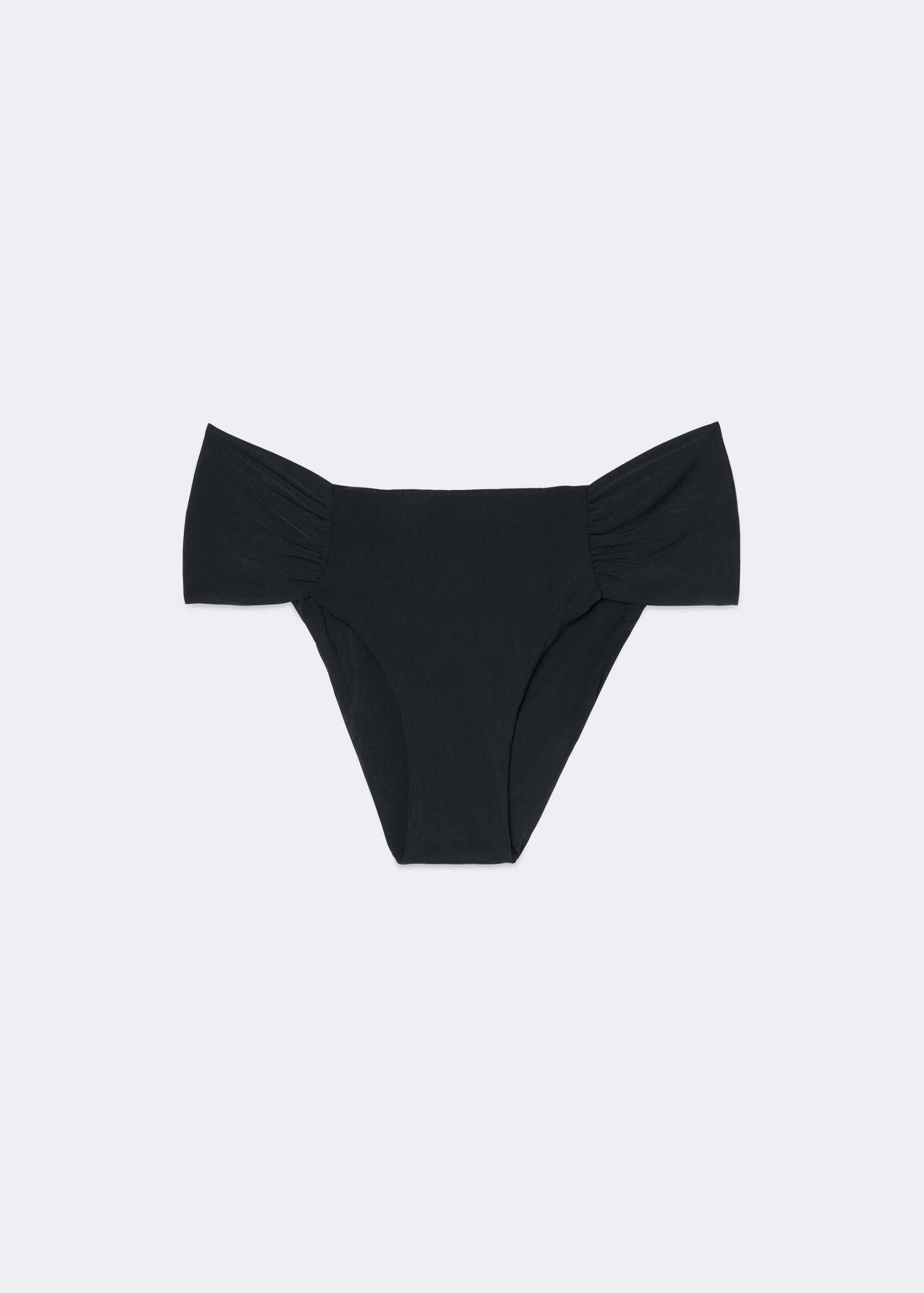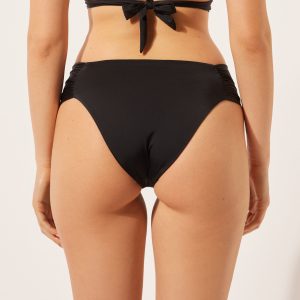 Bikini bottom with draped fabric at the sides that allows the height to be adjusted. The extremely soft fabric makes it pleasant to wear, offering a light and comfortable feel on the skin. Fully lined with invisible seams.