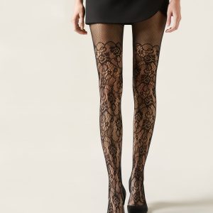 Women’s longuette effect fishnet tights embellished with an elegant floral motif. The upper part of the tights feature micronet and creates a sophisticated contrast that highlights the silhouette.