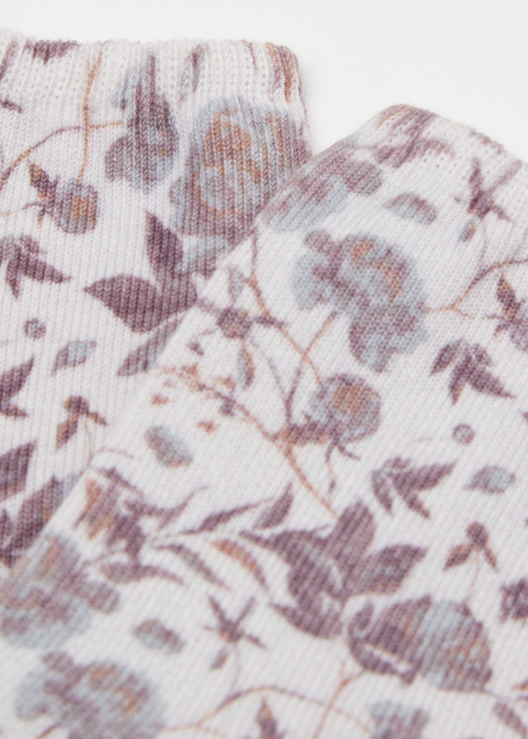 Women’s short socks with a floral digital print in delicate colors for a fresh and feminine look, perfect for a refined and original aesthetic.