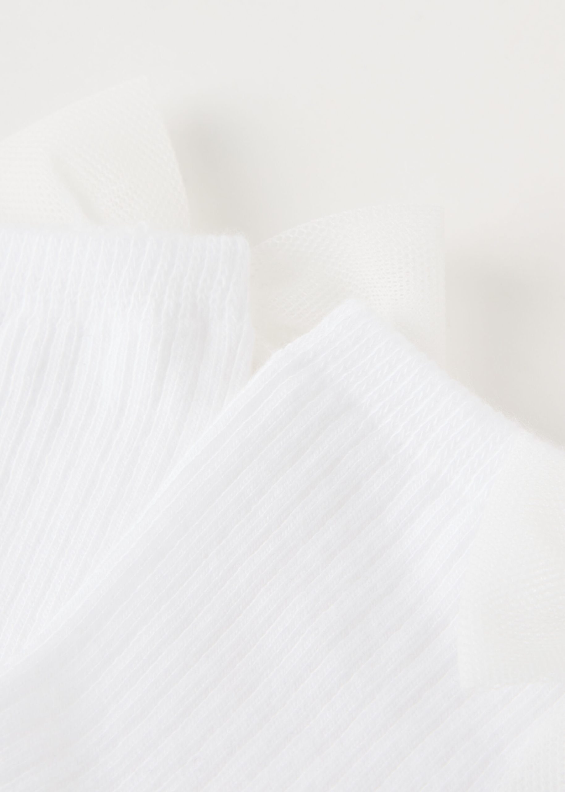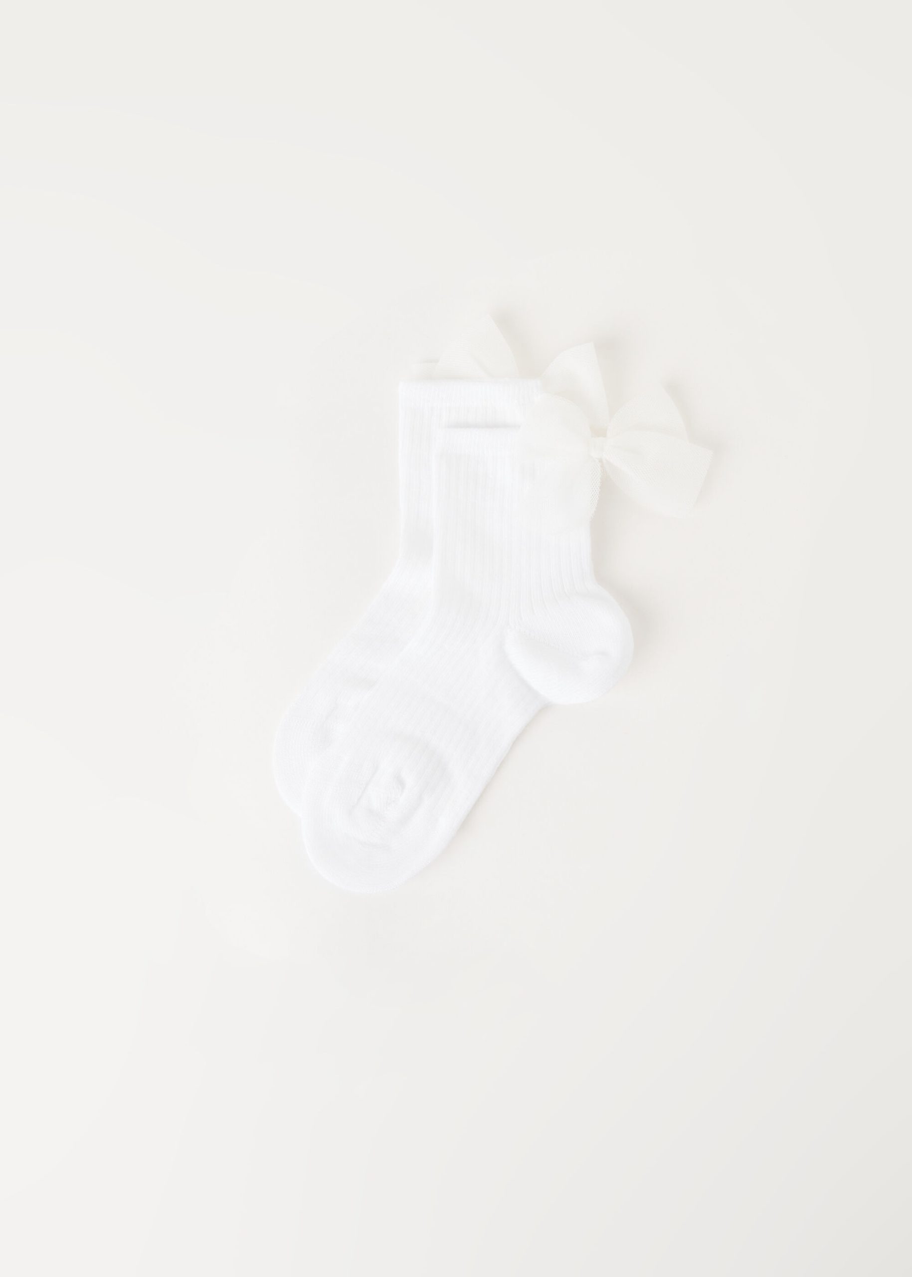 Girls’ short soft cotton socks featuring a ribbed construction and an elegant bow appliqué.
