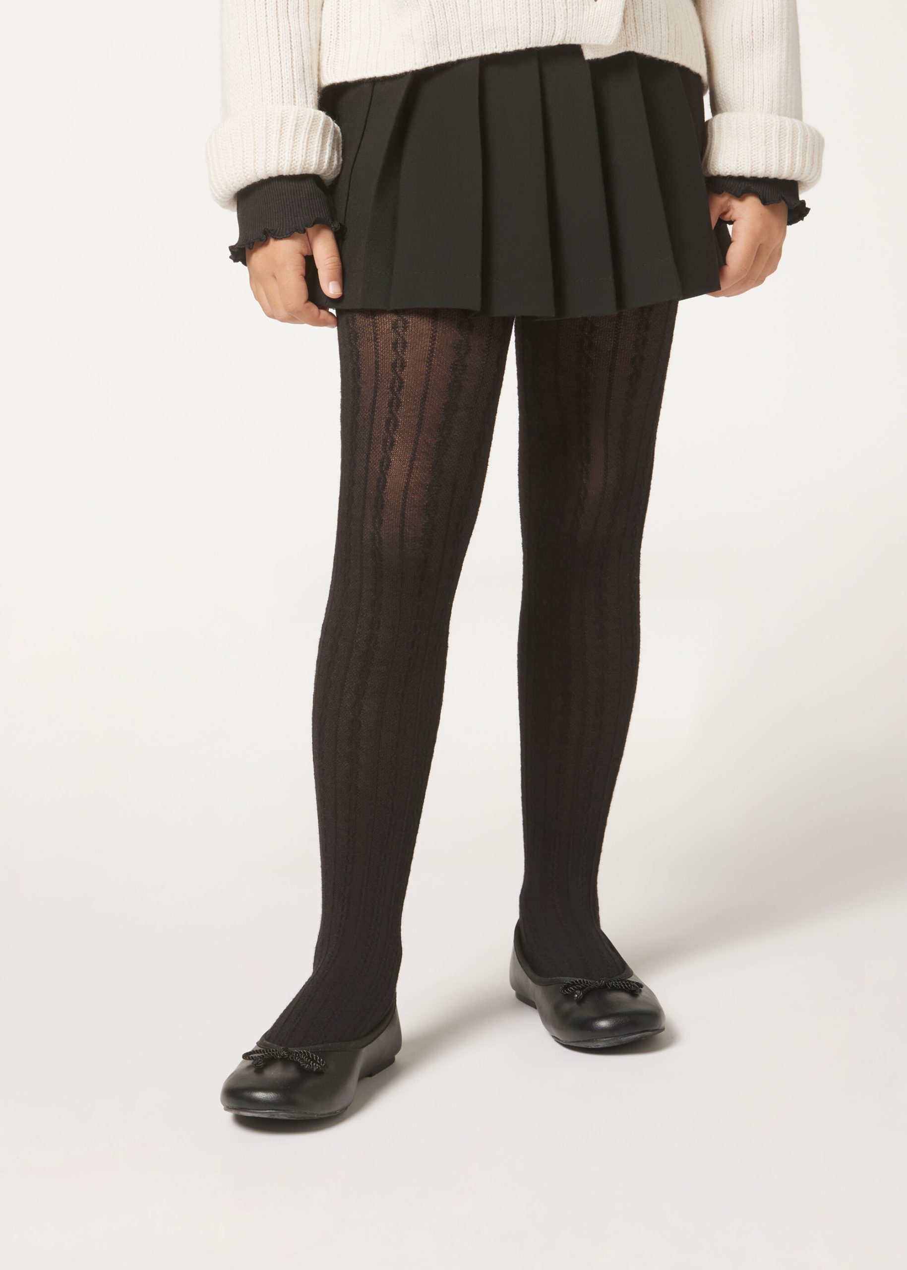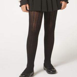 Cashmere blend tights offer softness and warmth for your little girl, combined with an elegant cable knit design. Perfect for any occasion.