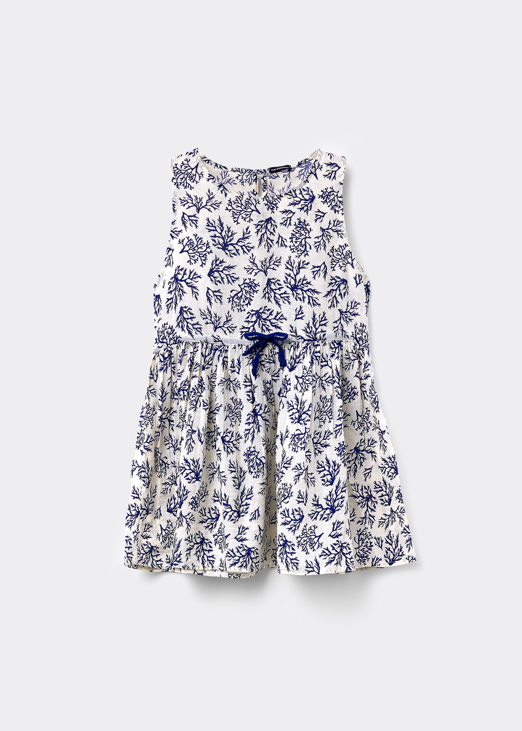 Girls’ dress in soft cotton, perfect as a cover-up. Lightweight and cool, it features a delicate colorful pattern that adds a touch of sweetness. Ideal for days at the beach or in the pool, it offers comfort and freedom of movement.