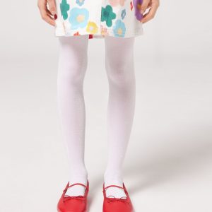 Girls’ opaque 70 denier tights featuring shiny colored glitter.