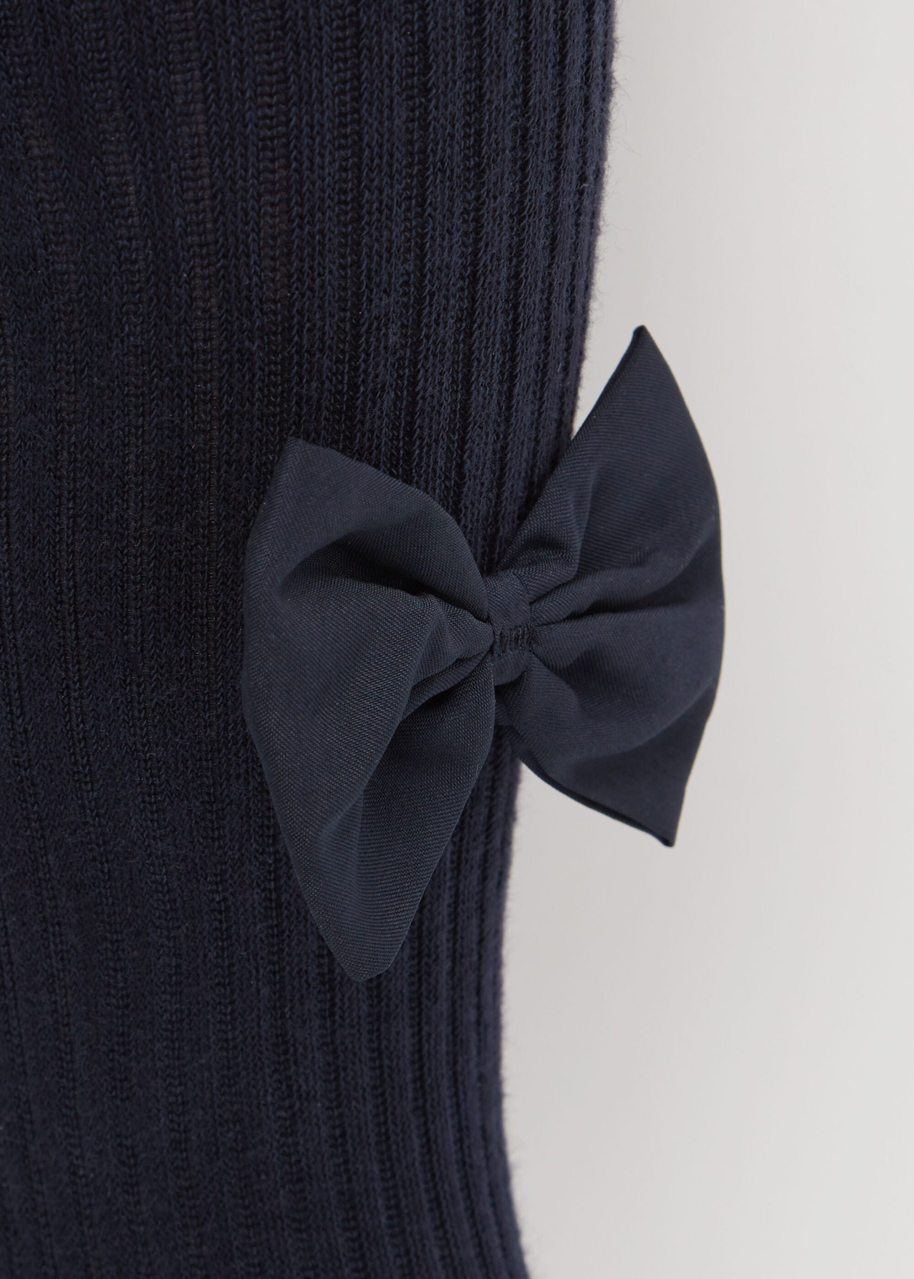 Girls’ soft cotton tights featuring a ribbed construction and embellished with an elegant tone on tone bow.