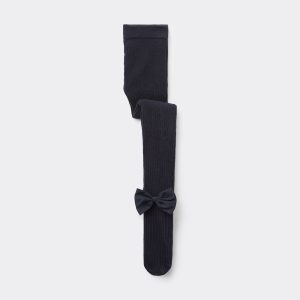 Girls’ Ribbed Cotton Tights with Bow