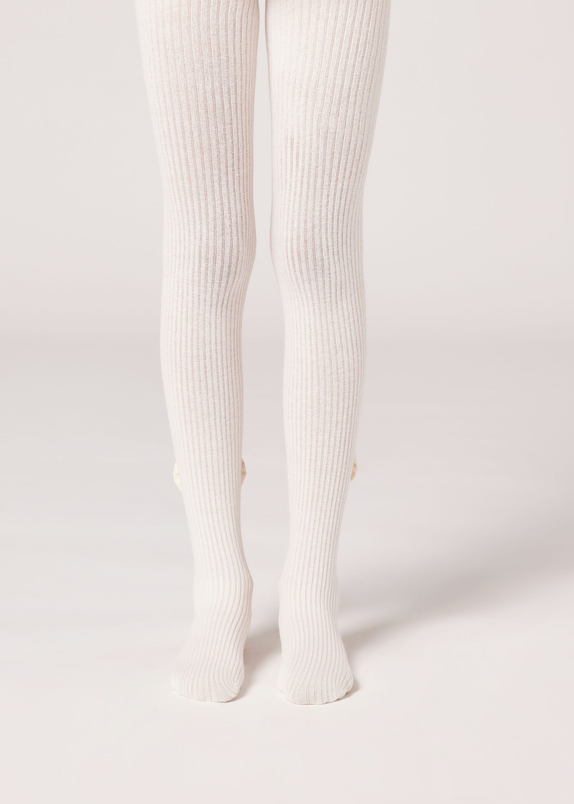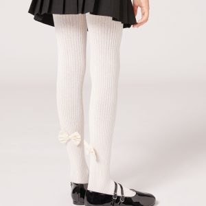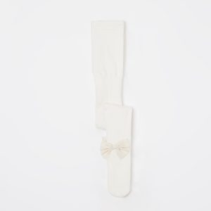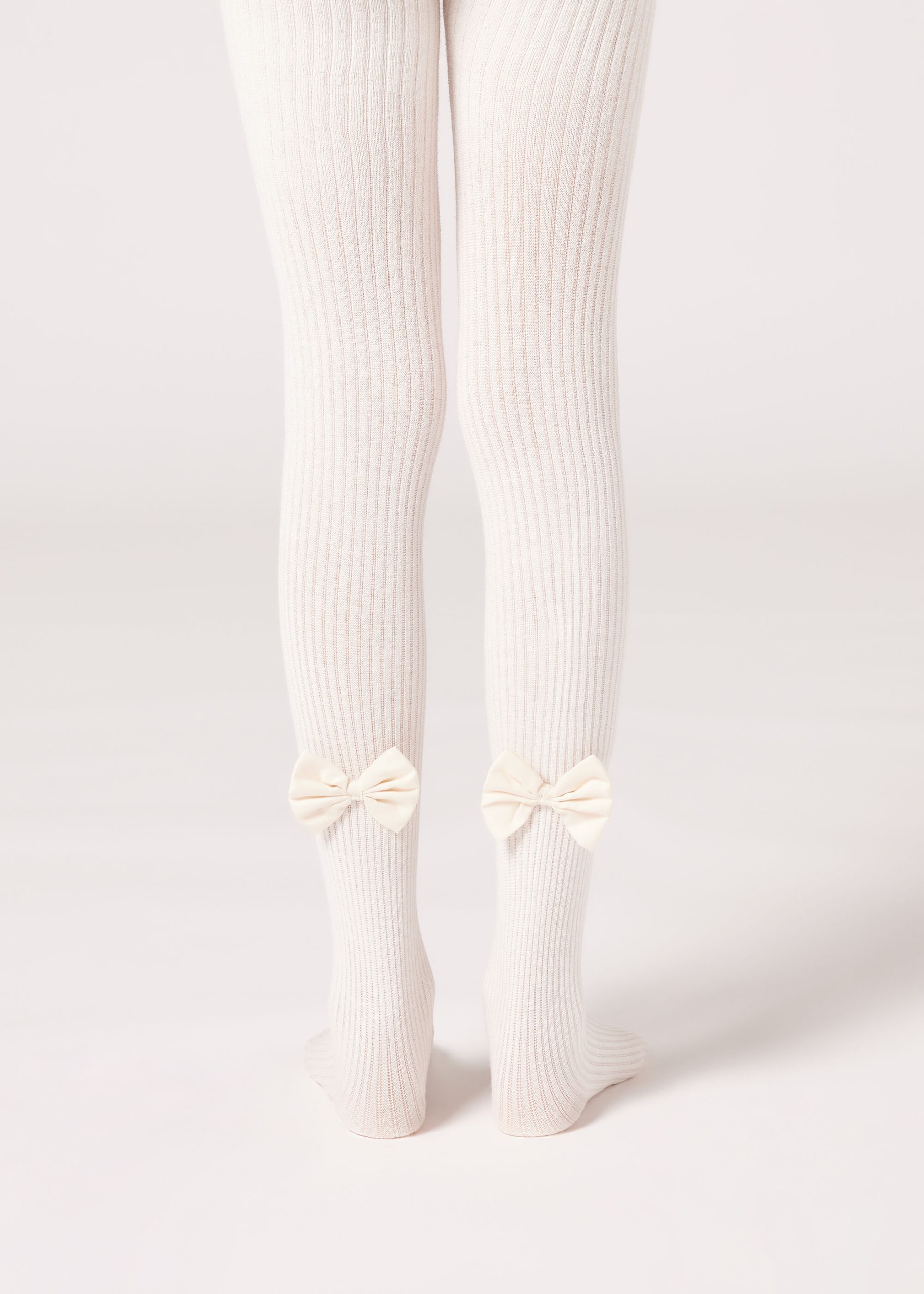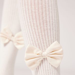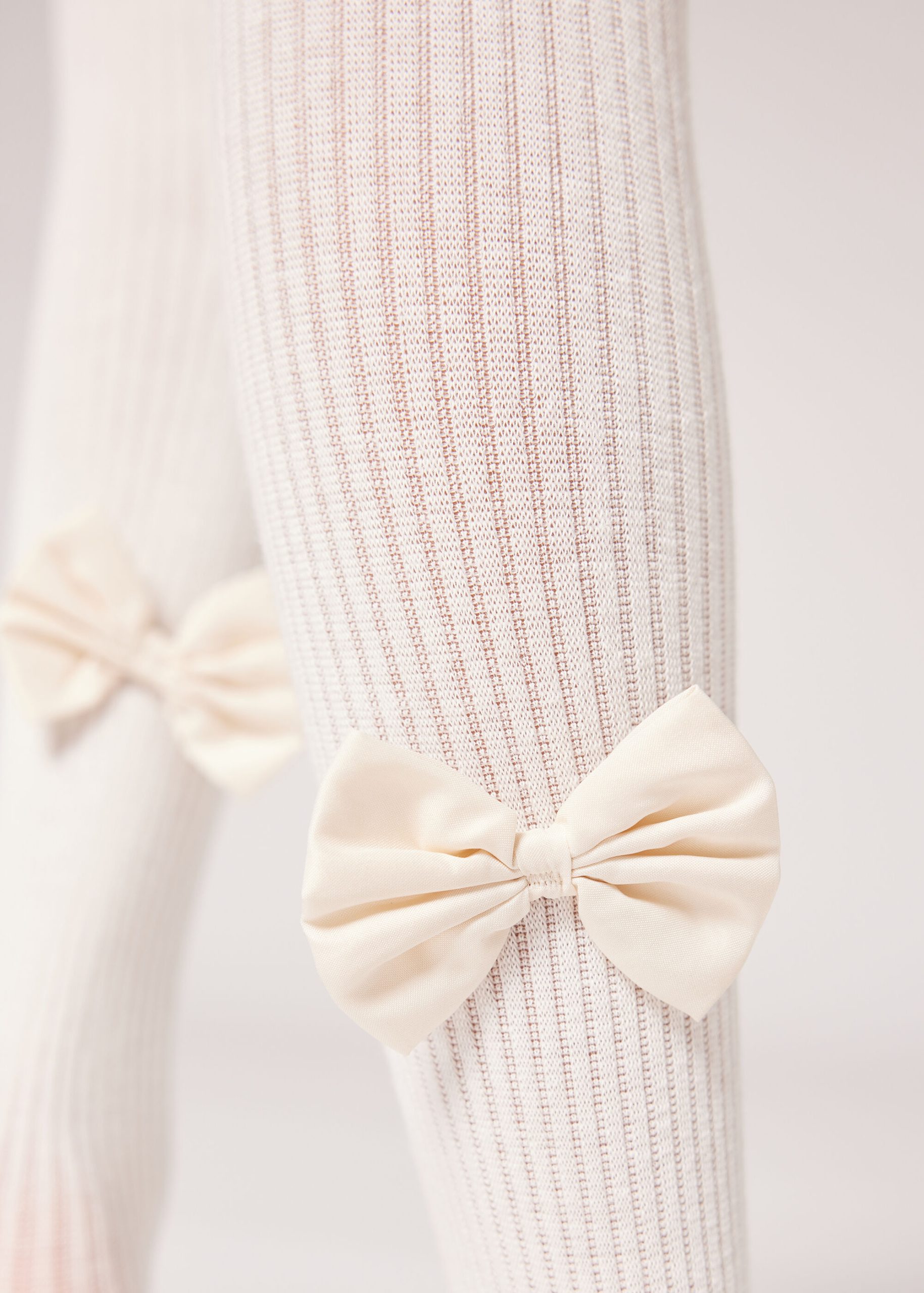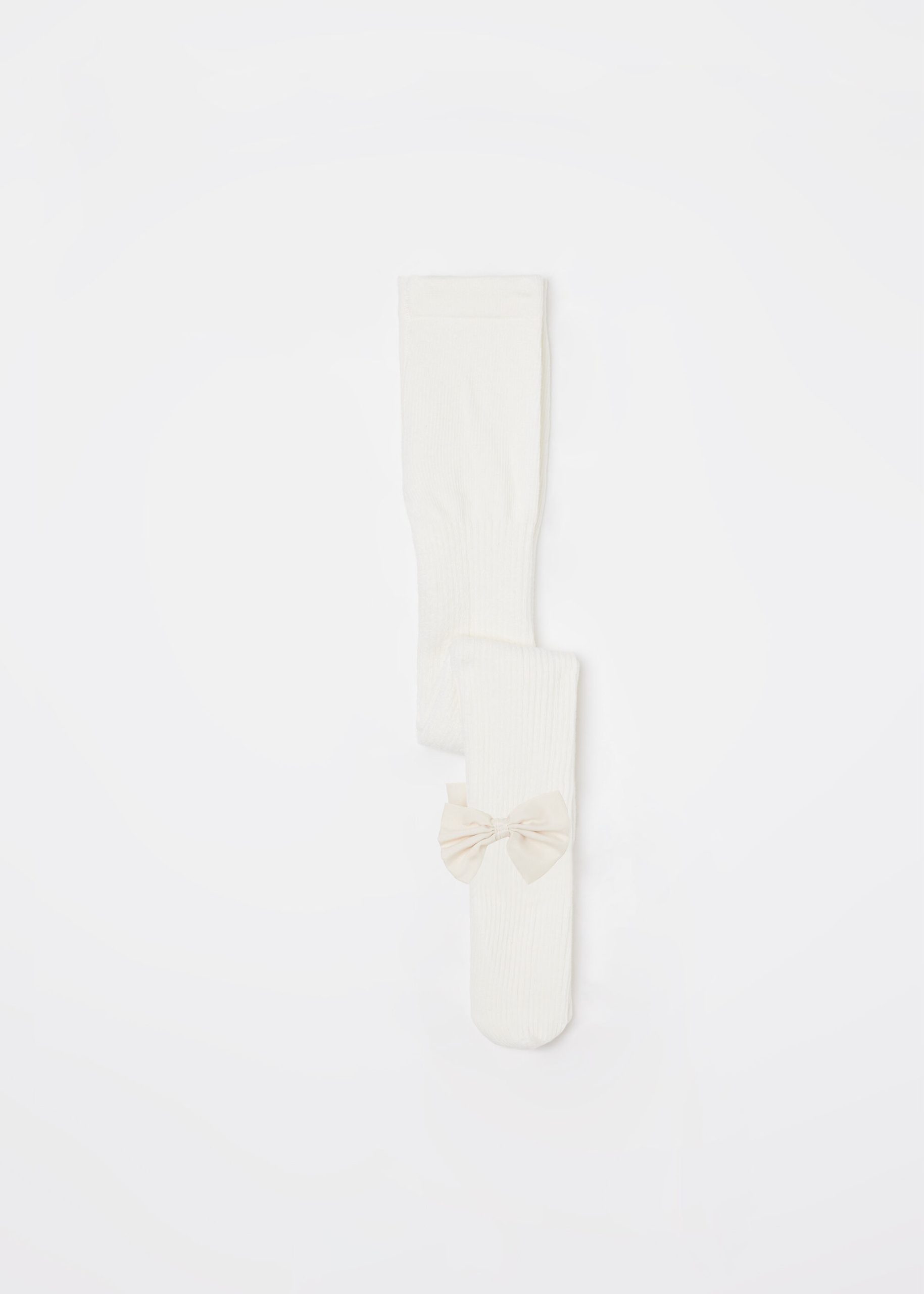Girls’ soft cotton tights featuring a ribbed construction and embellished with an elegant tone on tone bow.