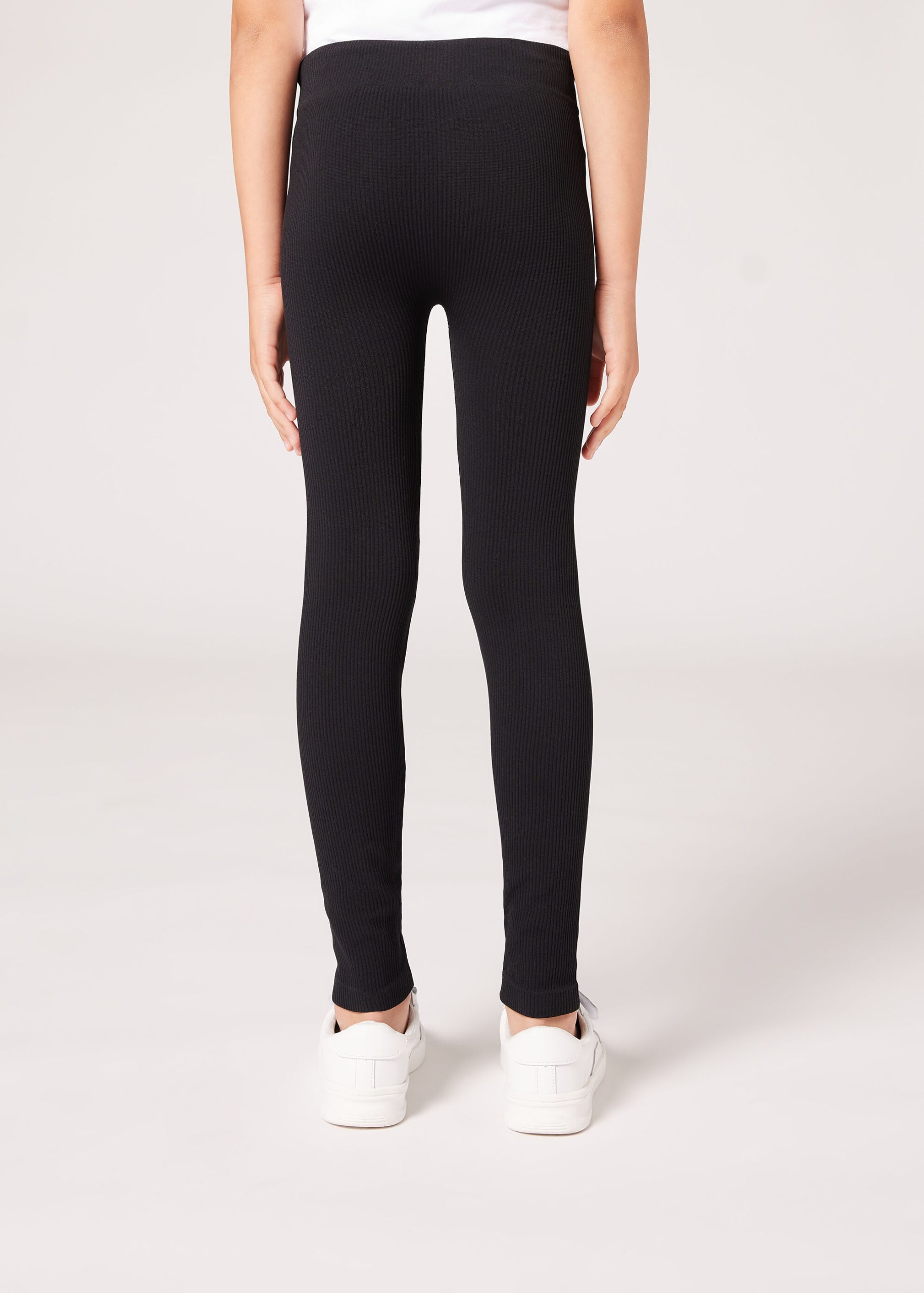 Girls’ fine ribbed seamless leggings in opaque fabric that is especially soft and comfortable thanks to it being elasticized. Comfortable waistband. Leggings suited for sports activities.