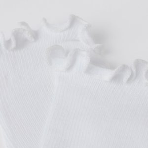 Girls’ short socks in soft cotton, featuring a ribbed construction and romantic scalloped border.