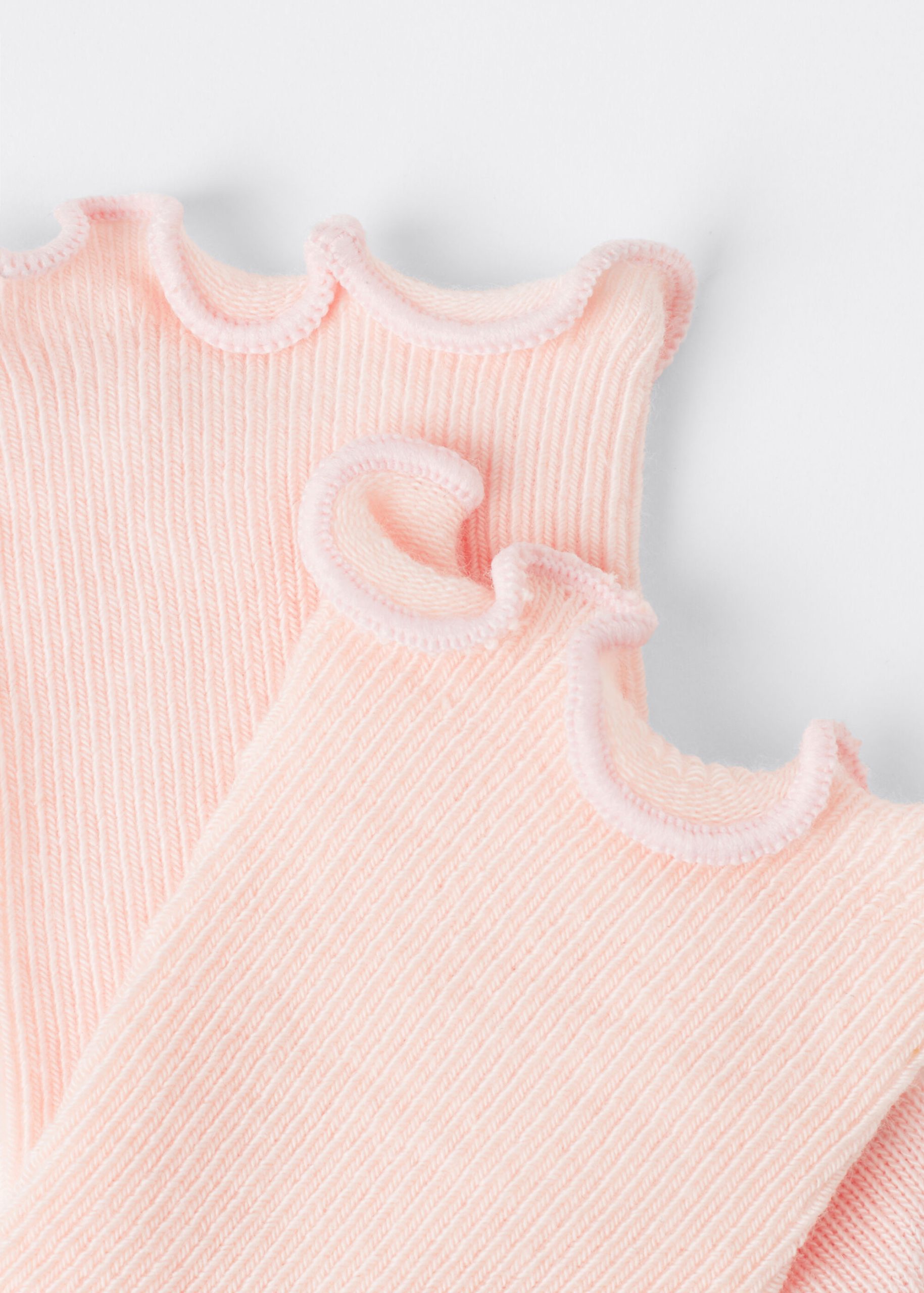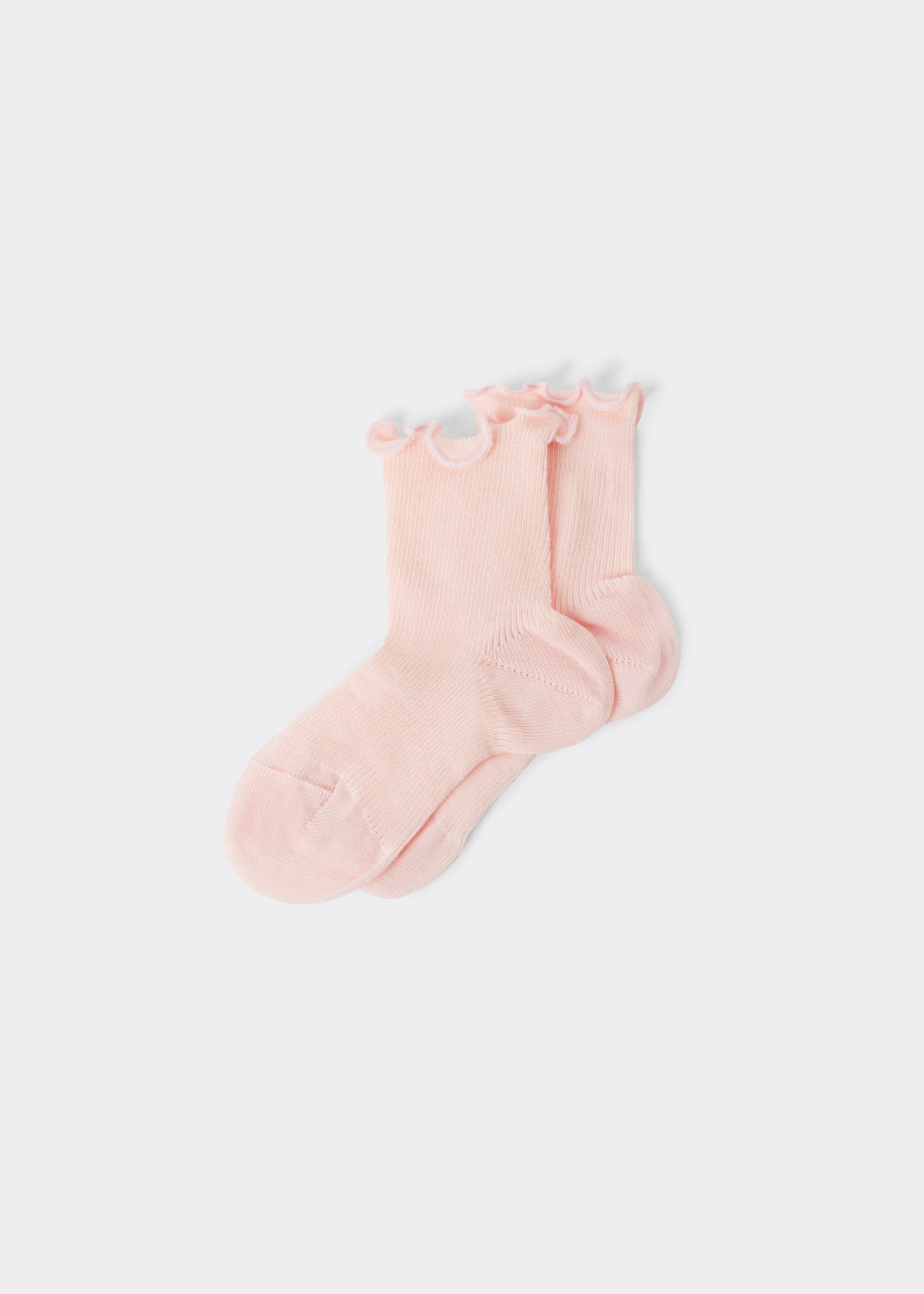 Girls’ short socks in soft cotton, featuring a ribbed construction and romantic scalloped border.