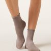 Women’s short socks with glitter trim and comfort edge, for a shiny and cozy touch.
