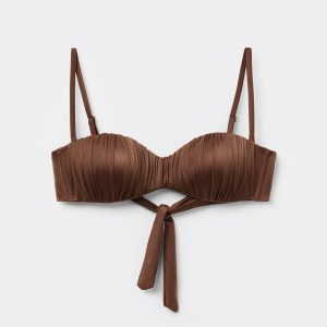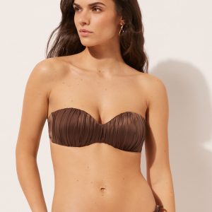 Graduated Padded Bandeau Swimsuit Top Shiny Satin