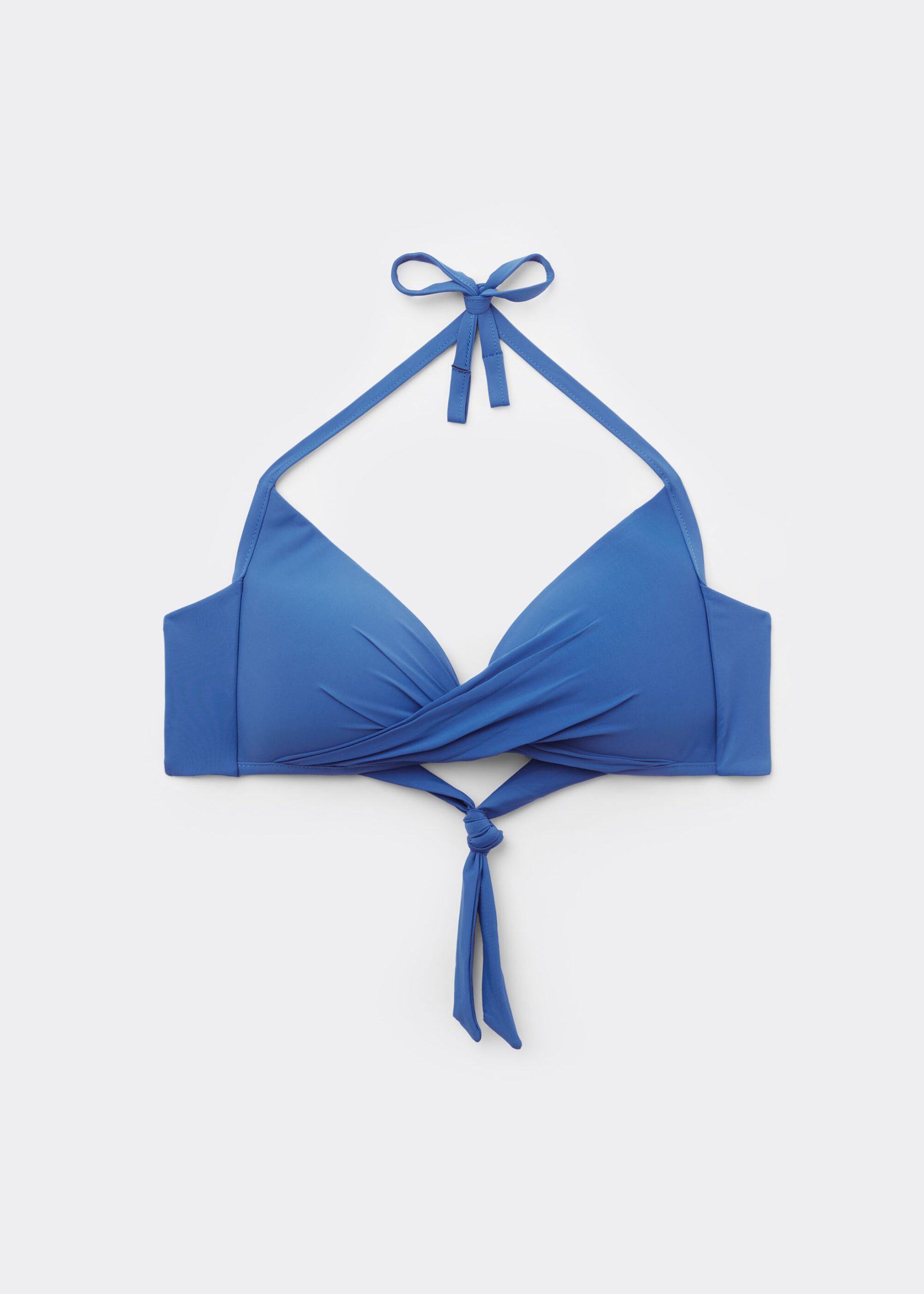 This criss-cross swimsuit top features a fixed triangle shape with graduated padding in the cups, adding subtle volume to enhance your natural curves. The criss-cross detail at the neckline not only adds a trendy touch but also creates a flattering, sculpted effect. Plus, you can customize the fit further with the back tie closure which ensures a secure fit contoured to your body and shape. The soft, breathable fabric feels luxurious against the skin, ensuring comfort for hours, whether you’re lounging or swimming. Designed with versatility in mind, the adjustable shoulder straps feature eyelets, allowing you to either hook them to the back band for a classic fit or tie them behind the neck for a chic crossover bikini top look. The lightly padded cups in size XL/40 provide extra comfort and support, making this bikini top ideal for both style and function. Perfect for pairing with your favorite swim bottoms, the crossover bikini top is a must-have for your swimwear collection if you’re looking for subtle wrap over style.