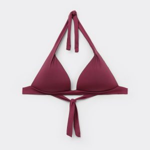Our Indonesia halter neck triangle bikini top offers the perfect combination of style and comfort. Designed with graduated padded cups, this top adds natural-looking volume to enhance and shape the bust for a flattering silhouette. Made from exceptionally soft fabric, the tie-back bikini top feels light and breathable on the skin, making it ideal for long days by the pool or at the beach. Graduated padding creates a push-up effect, enhancing and lifting the bust for a flattering, sculpted silhouette. The adjustable shoulder straps feature eyelets at the ends, allowing for versatile styling; hook them onto the back band for a classic look or tie them behind the neck for a chic halter effect. With a tie back bikini top closure, this design ensures a secure and adjustable fit, adapting to your shape effortlessly. Thoughtfully crafted for both sun lounging and active swimming, this bikini top combines premium materials with a stylish and versatile design, making it a standout addition to your swimwear collection.