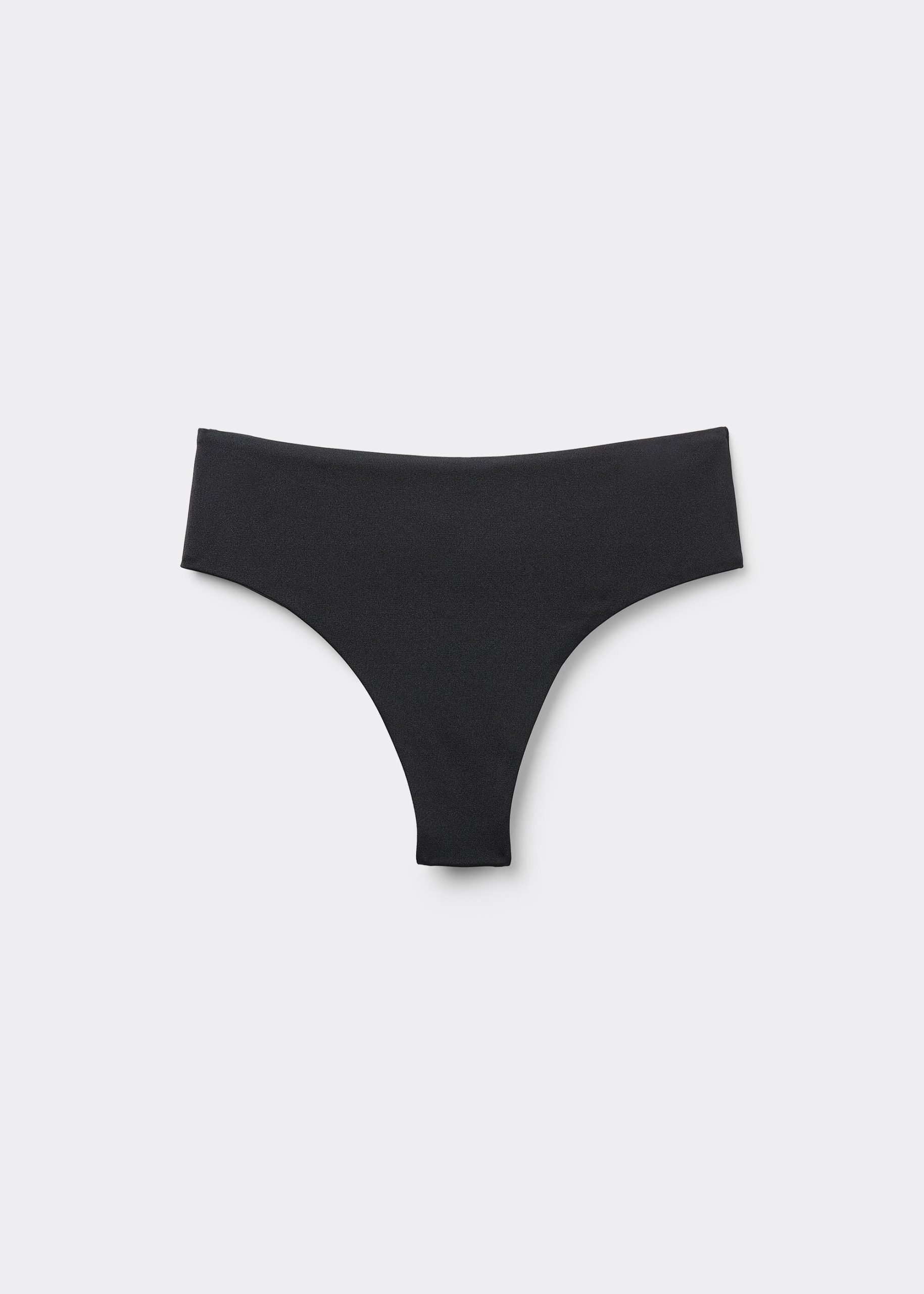 High waist Brazilian bikini bottoms featuring a chic, refined design and invisible seams. Made from a bright fabric, it features an elegant crossing of strings that adds a touch of sensuality and sophistication while exalting curves with style.