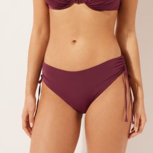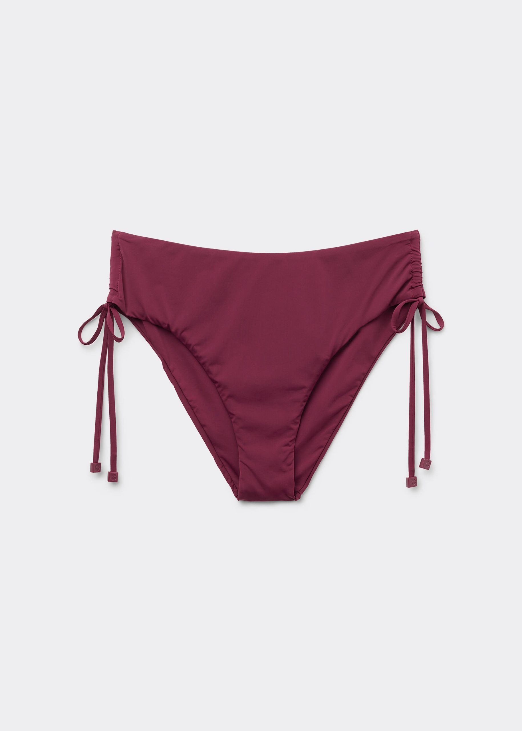 High waist bikini bottom with side drawstrings to adjust the fit of the leg openings, with squared aglets. The extremely soft fabric makes it pleasant to wear, offering a light and comfortable feel on the skin. Fully lined and with invisible seams.