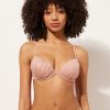 Bikini bottom with a high waist with a shaping effect on the abdomen, guaranteed by a special tulle at the front. The style features an elegant animal pattern and lightly ruched fabric. Fully lined with invisible seams.