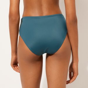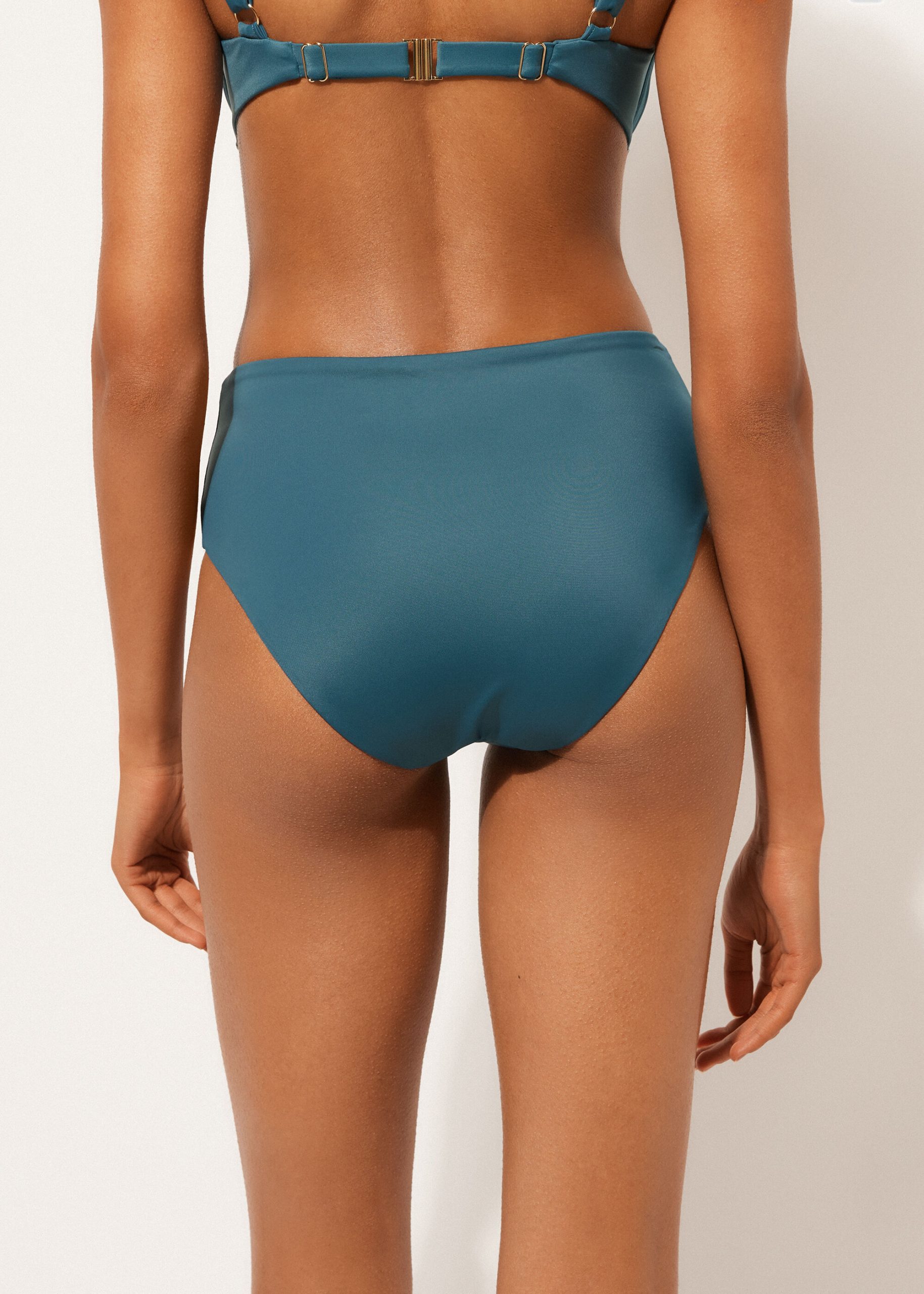 Bikini bottoms with a high waist and gathering on the sides, with a shaping effect on the abdomen. The compact fabric, designed to exalt and enhance the body’s curves, ensures excellent containment on the abdomen and is studied to make every woman feel at ease without constraint. Fully lined with invisible seams.