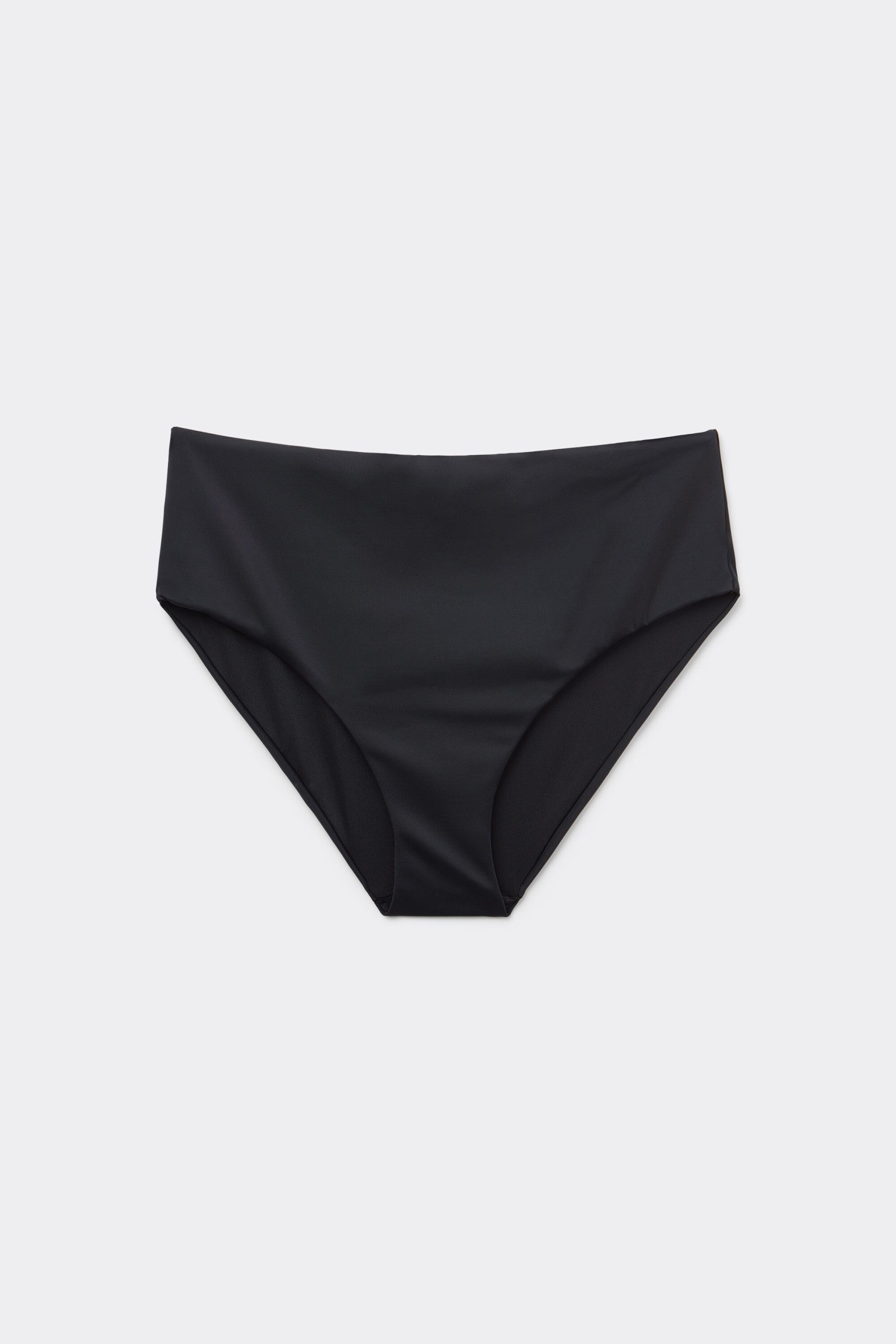 Bikini bottoms with a high waist and gathering on the sides, with a shaping effect on the abdomen. The compact fabric, designed to exalt and enhance the body’s curves, ensures excellent containment on the abdomen and is studied to make every woman feel at ease without constraint. Fully lined with invisible seams.