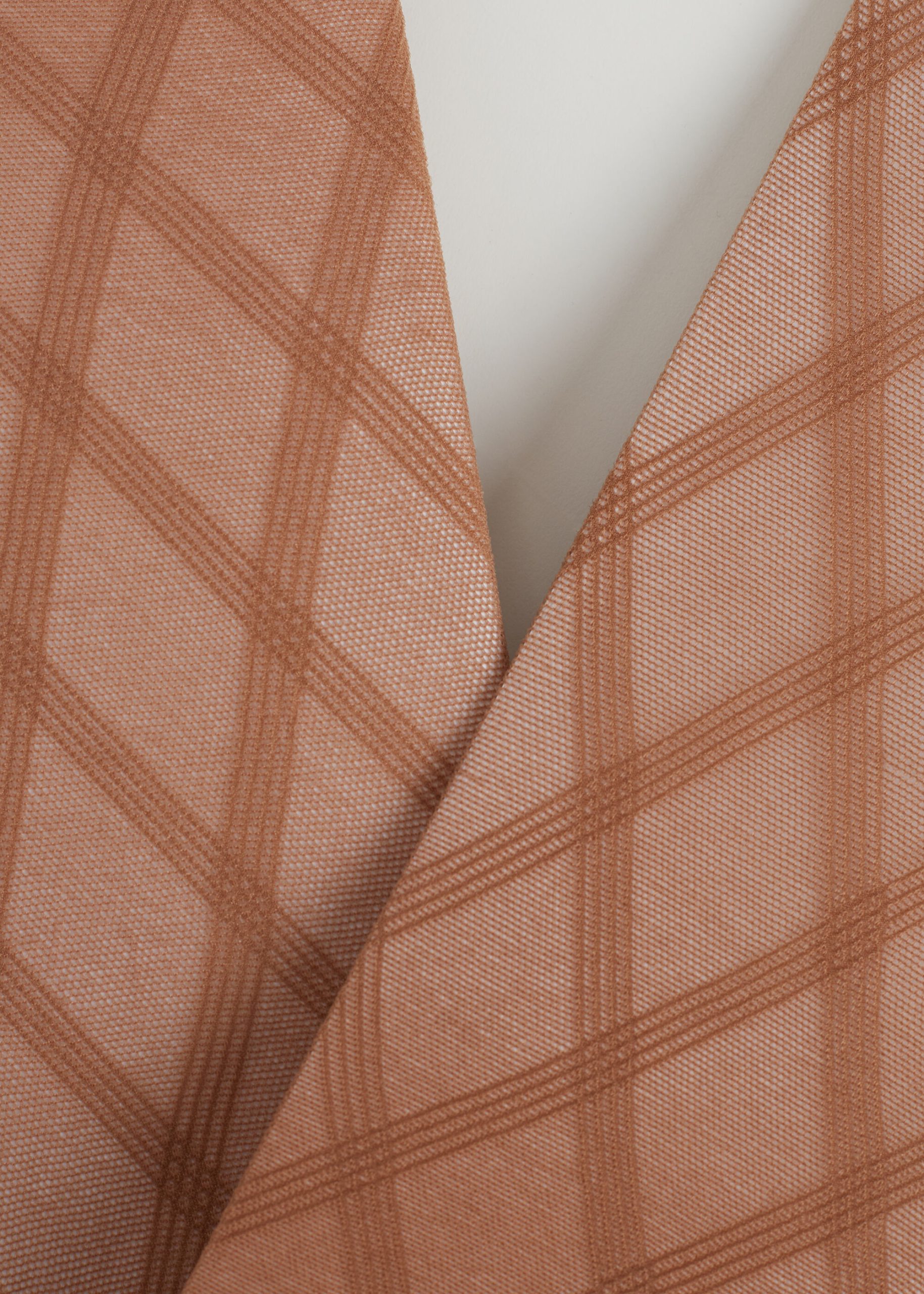 Women’s mesh 50 denier knee highs with soft smooth trim featuring a classic diamond pattern and made in Q-Nova Eco-Sustainable fibers sourced from reclaimed raw materials for a smaller environmental impact.