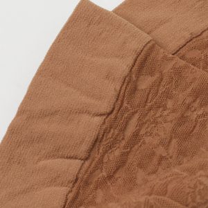 Women’s knee-high socks in tulle 50 denier fabric embellished with a lace floral motif. Smooth cuff.