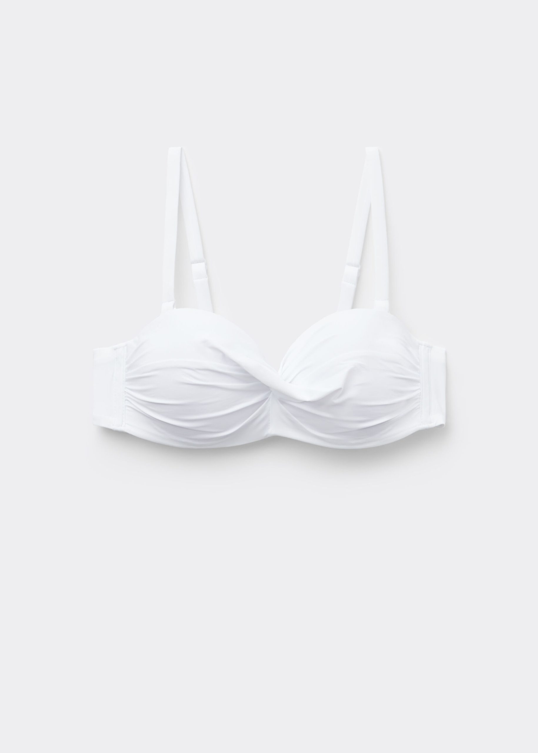 Elevate your swimwear collection with our lightly padded twist bandeau bikini top, designed for a perfect balance of style and support. Featuring a central twist detail, this bandeau style contours and enhances your shape with a flattering silhouette. The underwire and side boning provide exceptional support and structure, making it an excellent choice for all bust sizes, including larger cup sizes. The soft, lightweight fabric feels luxurious on the skin, ensuring all-day comfort whether you’re lounging by the pool or enjoying a swim. Removable, adjustable straps offer versatile styling options, letting you wear it as a classic halter, over-the-shoulder, or strapless for minimal tan lines. A secure back hook-and-eye closure with two adjusters ensures a customized fit that stays in place. Pair this wired bandeau bikini with matching or mix-and-match bottoms for a personalized beach-ready look.