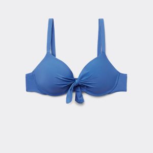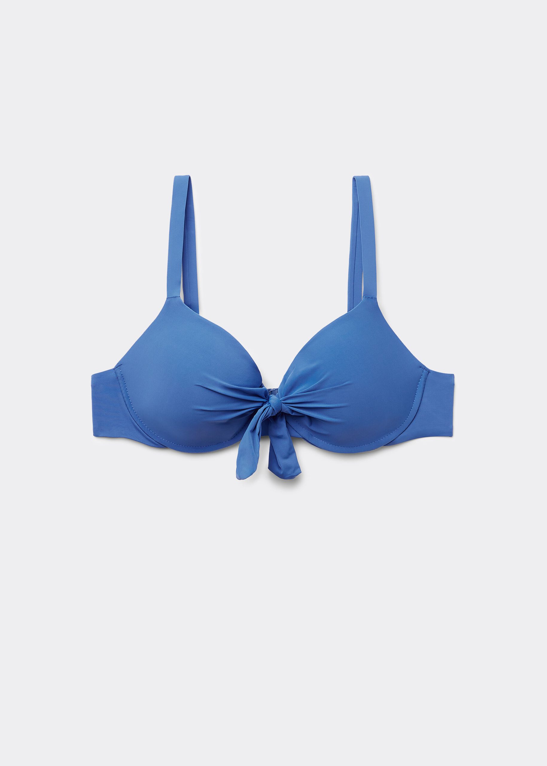 Push-up bikini top with lightly padded cups and underwire to highlight the décolleté. The special bow detail at the décolleté helps to adjust the push-up effect. The extremely soft fabric makes it pleasant to wear, offering a light and comfortable feel on the skin. Adjustable straps. Back closure with two hook-and-eye closures to improve the fit of the underband.