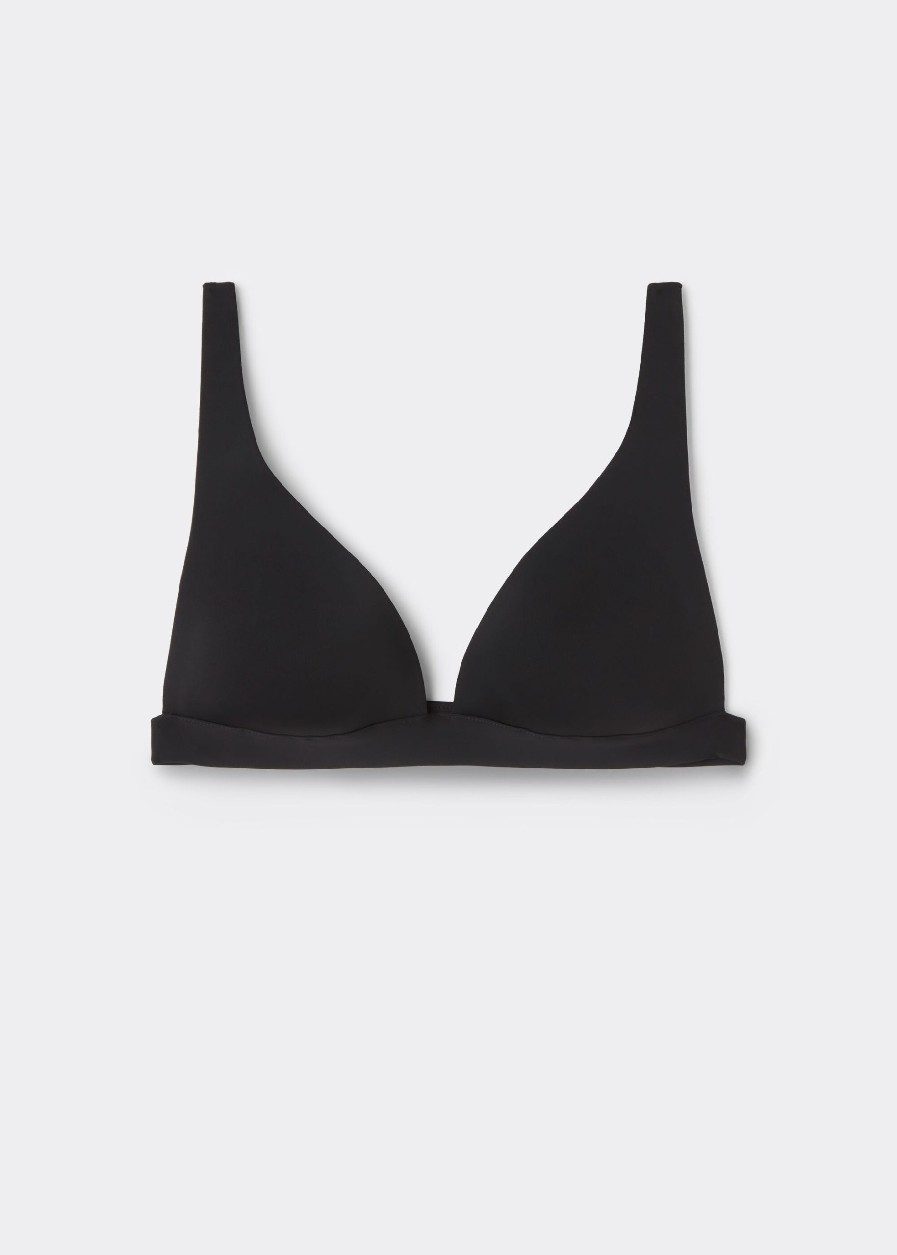 The lightly padded triangle swimsuit top is a sleek and supportive choice, designed with a high apex bikini top silhouette that flatters and enhances your natural shape. Its fixed triangle structure provides light padding for gentle shaping, creating a smooth and balanced look without the need for an underwire. The high apex swimsuit design features a raised under bust for a secure and comfortable fit, making it ideal for all-day wear. Crafted from ultra-soft, quick-drying fabric, it offers a lightweight feel on the skin, ensuring maximum comfort whether you’re sunbathing or swimming. Adjustable straps allow for a tailored fit, while the back hook-and-eye closure with an adjustable band ensures added flexibility and support. This triangle top pairs effortlessly with high-leg, hipster, or string bikini bottoms, making it a versatile choice for creating customized swimwear looks with modern flair.