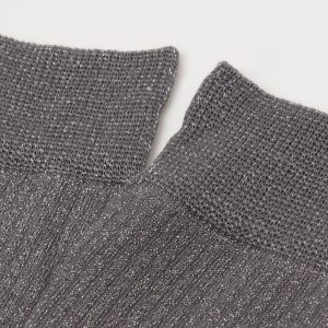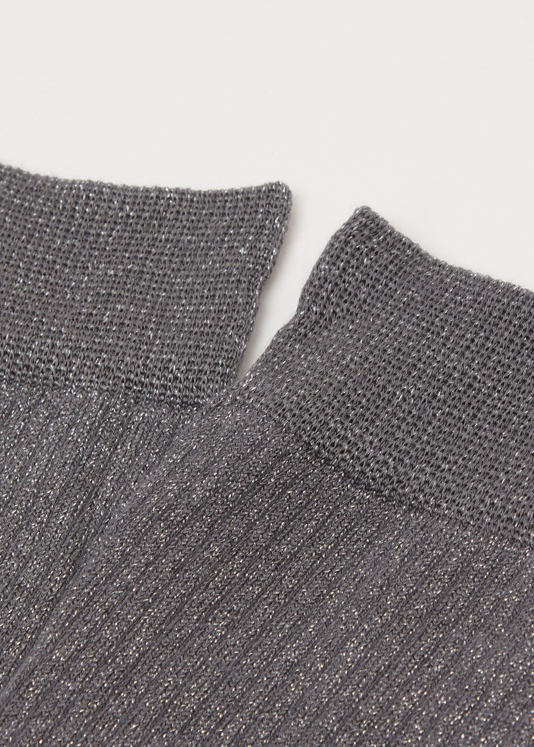 Women’s long ribbed socks with glitter thread. This design adds a touch of shine and style to your outfit, guaranteeing optimal comfort and fit to wear on different occasions.
