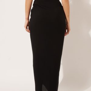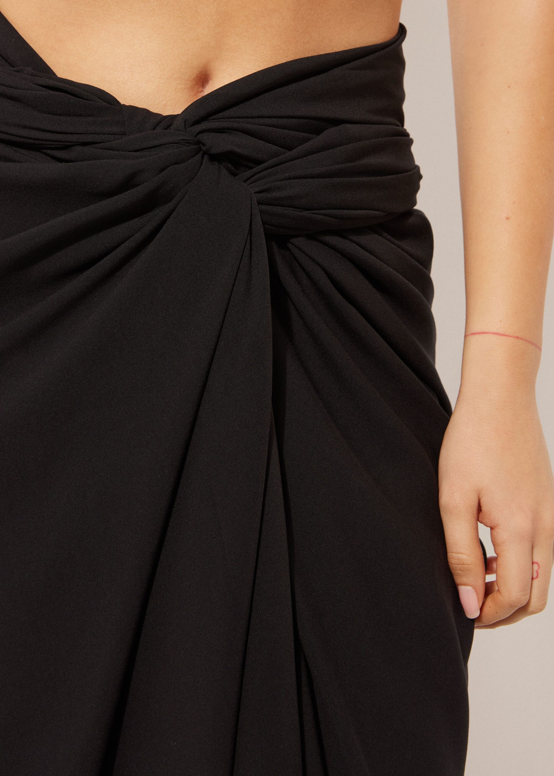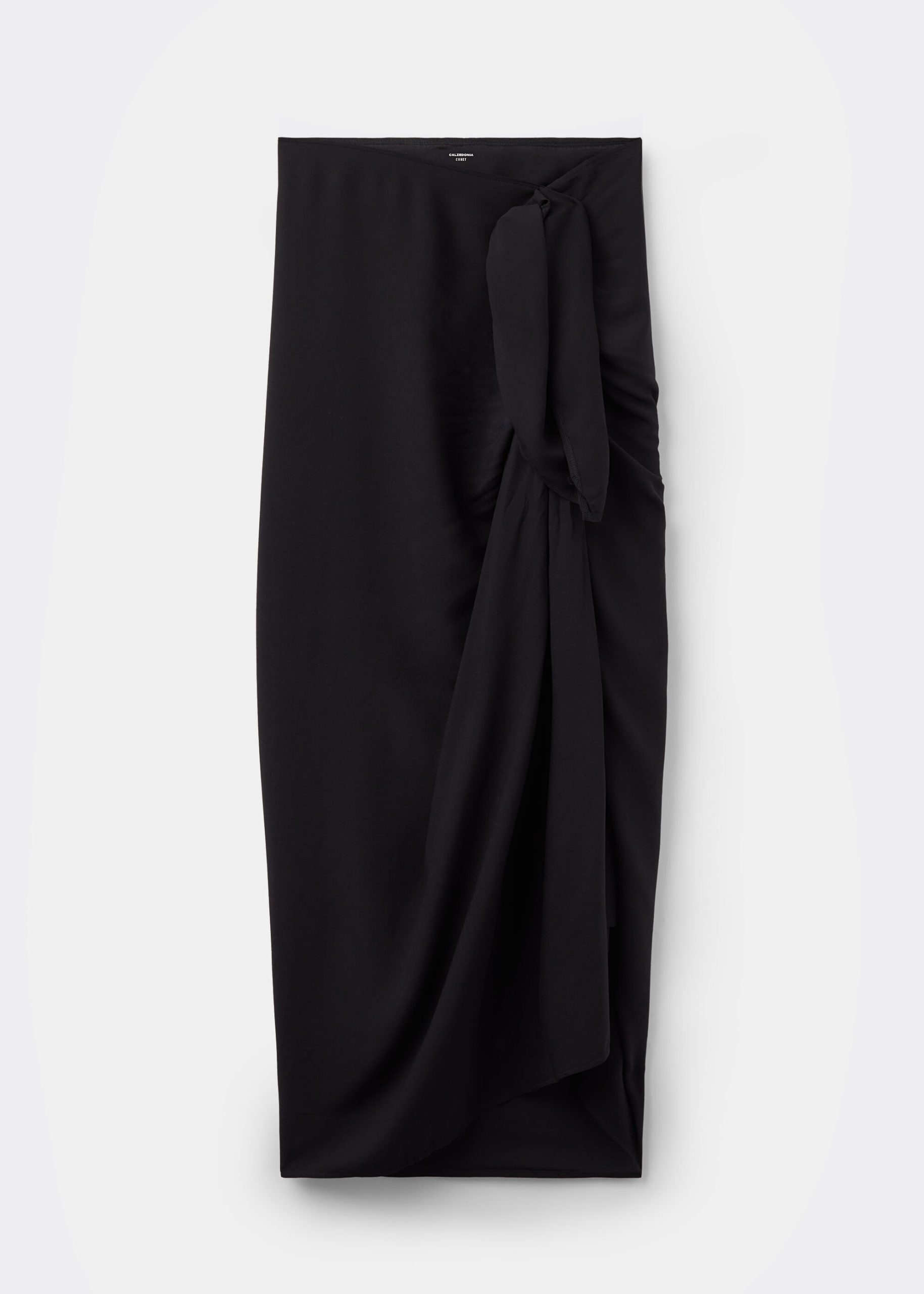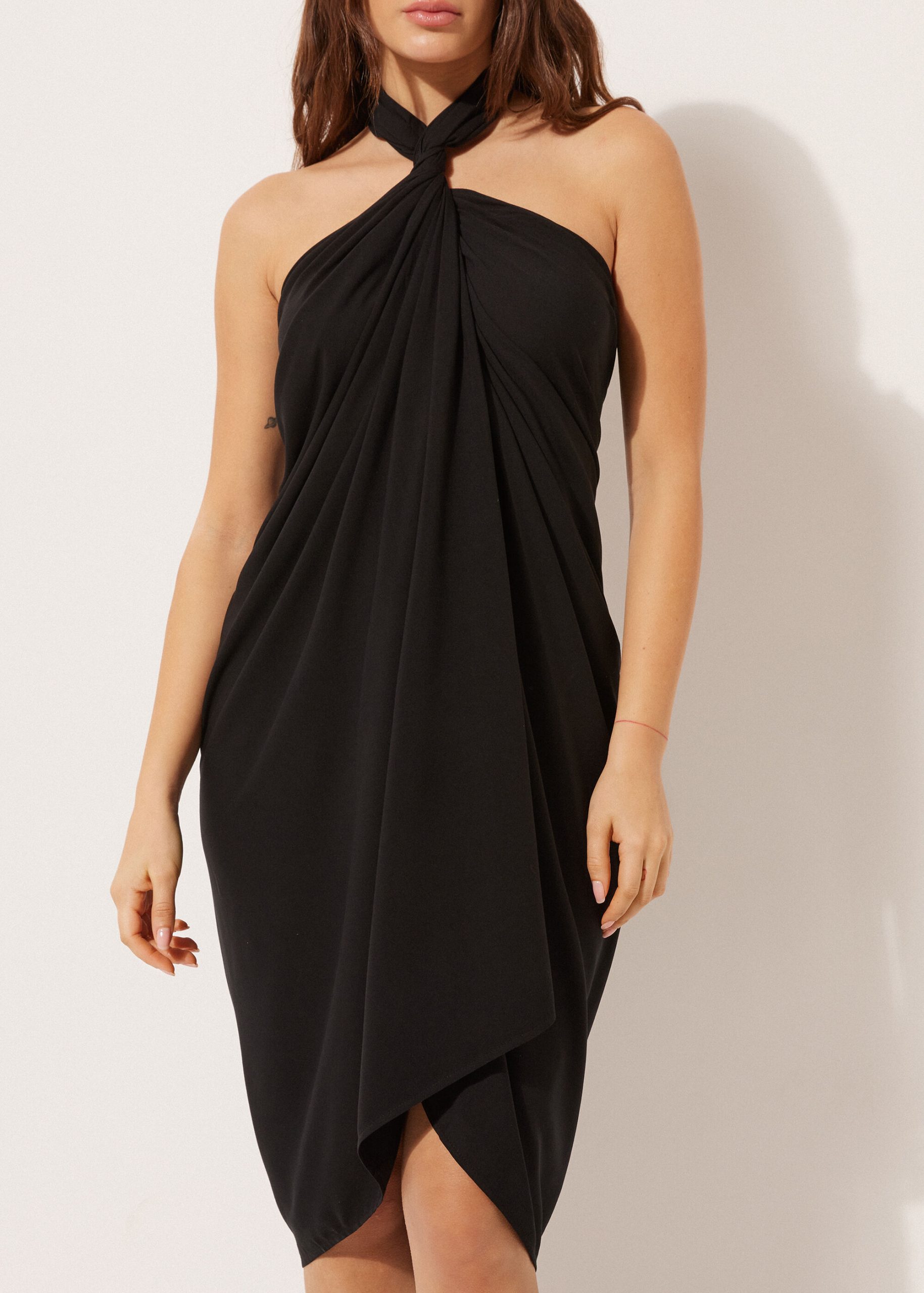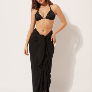 Long viscose sarong to be worn classically tied around the waist, or as a cover-up by tying the ends of the fabric around the neck or above the bust.
