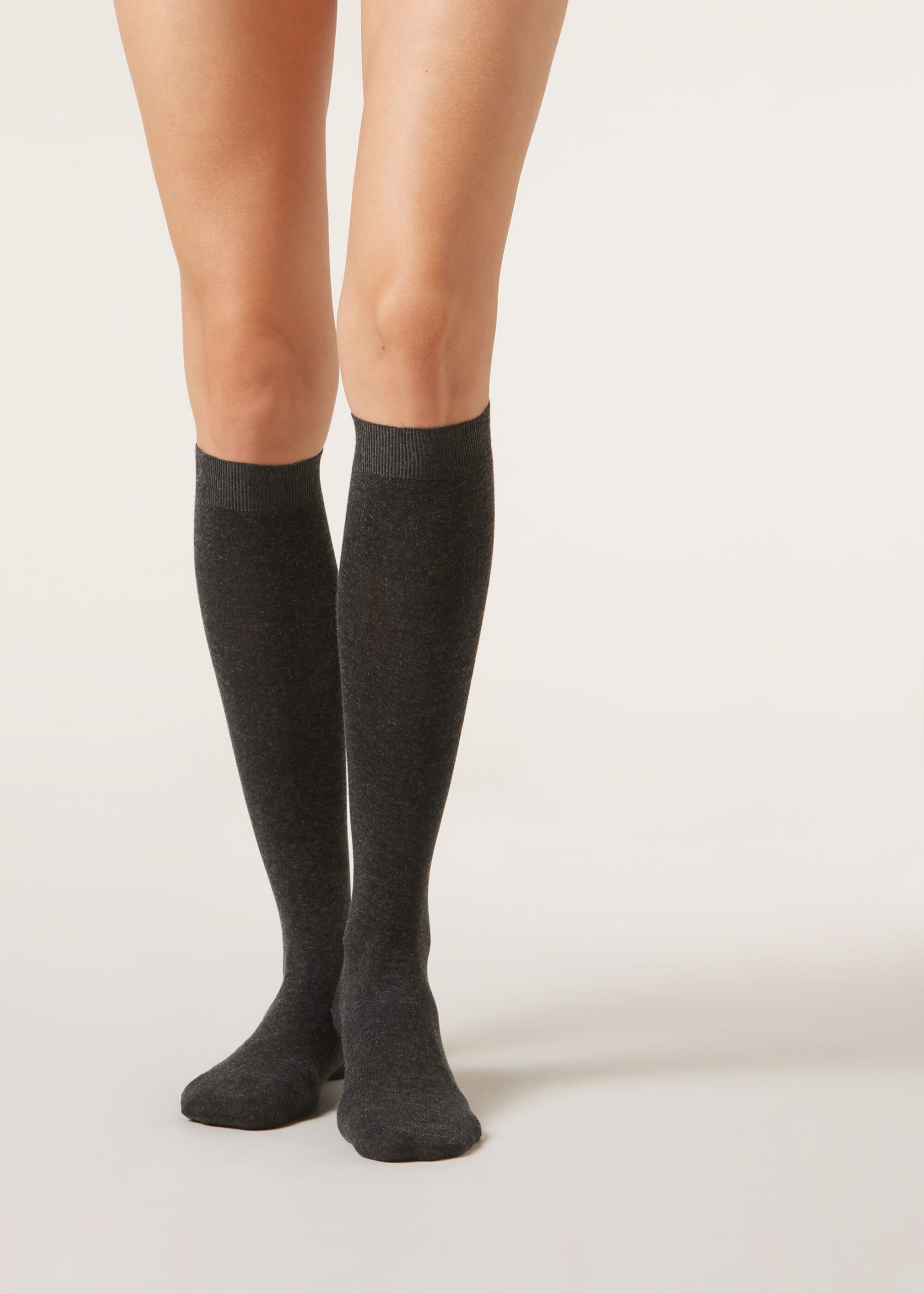 Women’s smooth long socks with a warm and soft cashmere interior.
