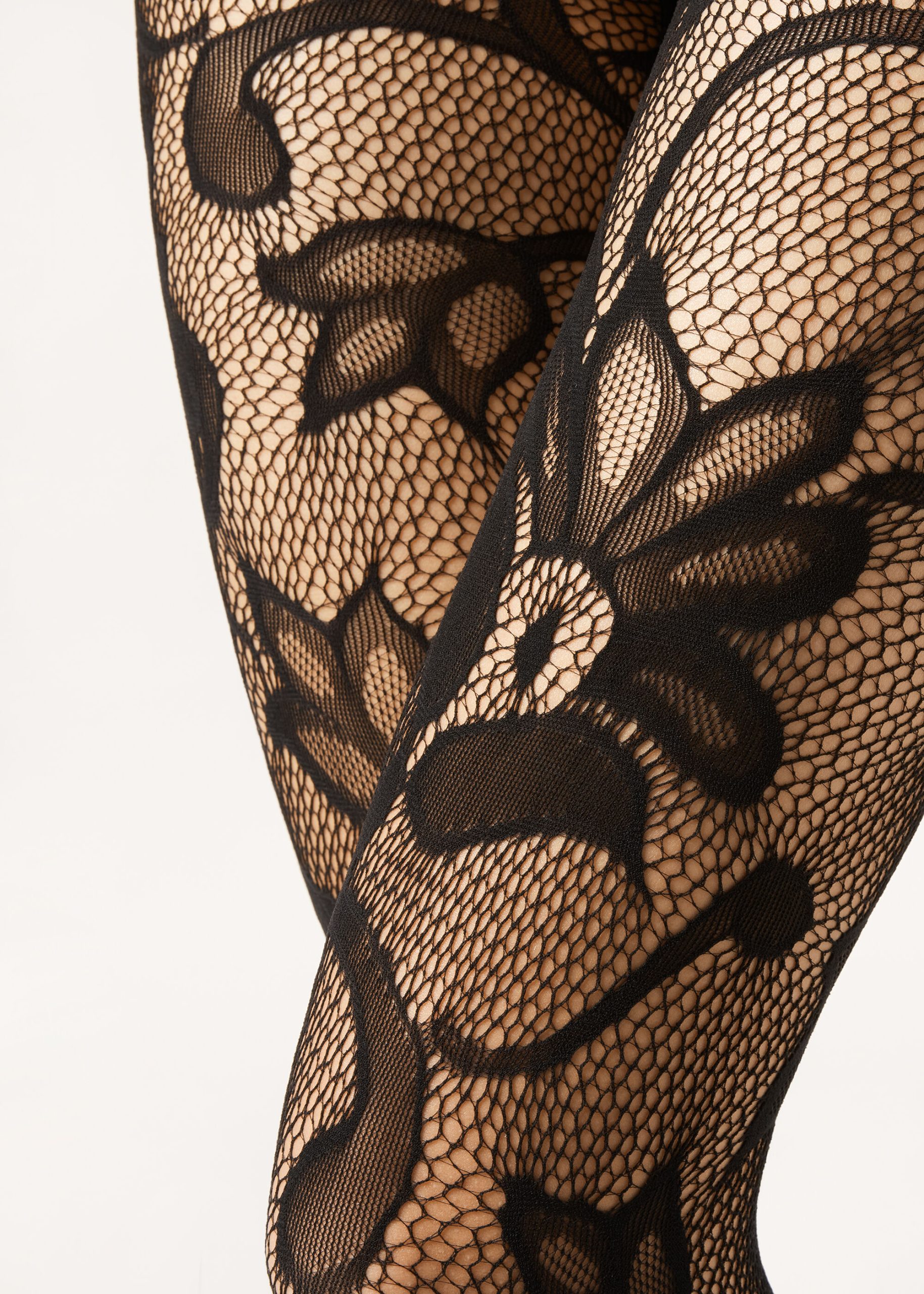 Mesh tights with a macro floral pattern with a bold and feminine character. Part of the Deluxe Selection Capsule, a line that highlights striking workmanship and bold patterns, designed to enhance every look with personality. Finished with a soft waistband for a perfect fit and flawless comfort.